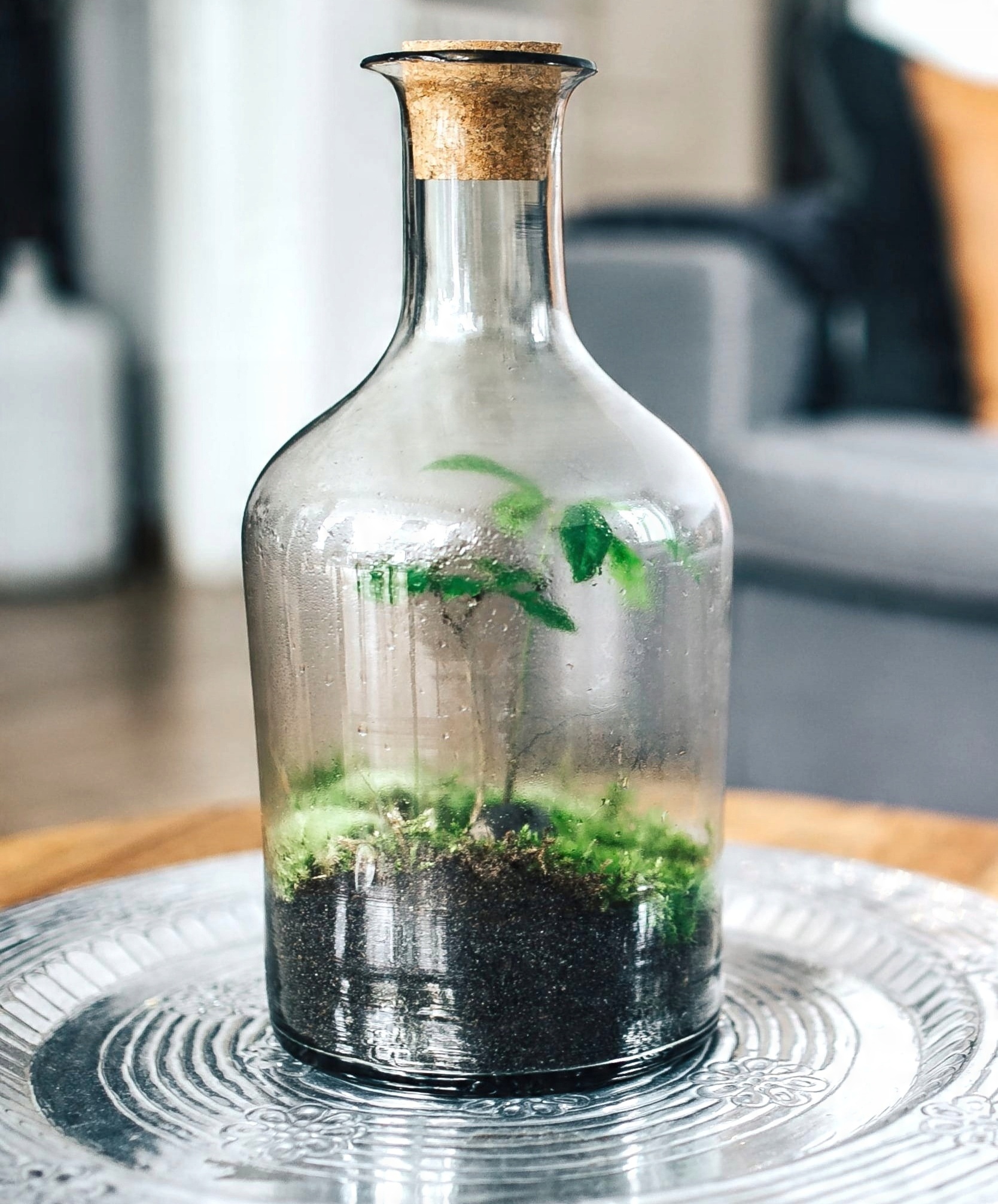 Из декоративного песка мы также можем составить собственный лес в банке. Оригинальная композиция из растений, внутри сосуда воссозданы нижние ярусы леса, благодаря чему банка похожа на миниатюрную сказочную страну. Помимо декоративного аспекта, лес в банке — это еще и продуманная конструкция, создающая благоприятный для растений микроклимат: замкнутый водный контур обеспечивает постоянную влажность внутри благодаря конденсирующемуся пару, который также орошает субстрат.< /п>