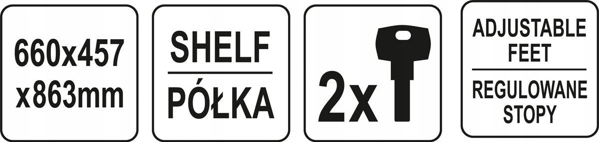 БАЗОВА СЕРВІСНА ШАФА 2 ДВЕРІ, РОЗМІРИ ШАФИ 660 X 457 X 863 мм. Yato