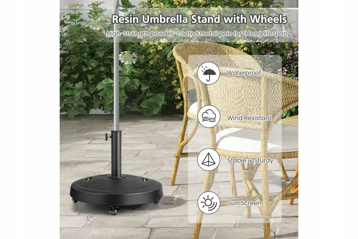 Наша круглая, загруженная базовая зонтика диаметром 52 см весит 23 кг, обеспечивая твердую поддержку садового зонта. Распределенный с 2 адаптерами с диаметром 38 мм и 48 мм, подставка зонтика подходит для большинства зонтиков, доступных на рынке с длиной 300 см и таблицами во внутреннем дворике. Более того, наша прочная зонтная стенда состоит из смолы высочайшего качества, которая выдерживает внешние условия без старения и исчезновения, обеспечивая длительную долговечность. Существуют поворотные колеса 360 ° и выдвижные ручки, которые позволяют легко двигаться. Независимо от того, используете ли вы его дома или для коммерческих целей, наша круглая зонтика может быть идеальным выбором для защиты вашего зонта
