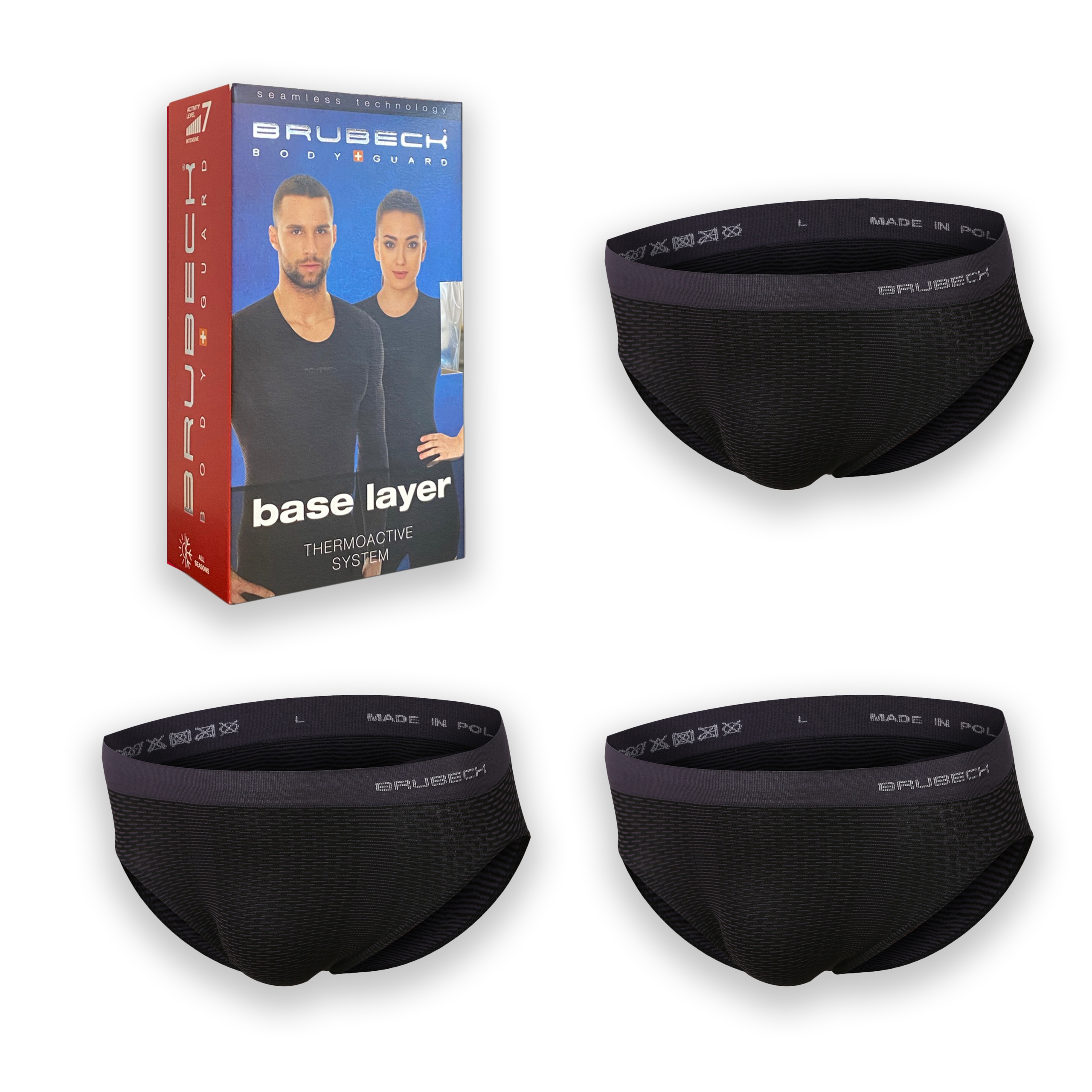 Мужские трусы базового слоя изготовлены по бесшовной технологии из тонкой дышащей ткани. Их конструкция основана на трехмерной сетчатой модели, что увеличивает поверхность сбора влаги в несколько раз. Прилегая к телу, ткань создает воздушные каналы, которые сокращают время разогрева тела и эффективно выводят влагу наружу. Продукт обладает антибактериальными и противоаллергическими свойствами. Их рекомендуют в качестве базового слоя при различных физических нагрузках, требующих интенсивных усилий.