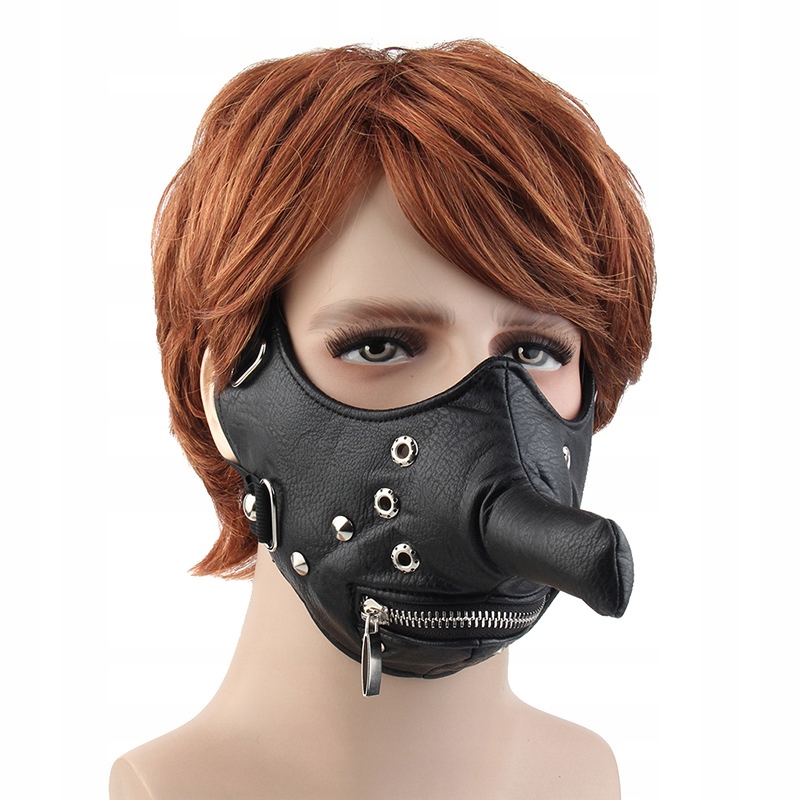 bdsm шкіряна маска довгий ніс блискавка на роті