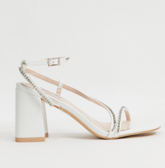 БЕЛЫЕ БОСОНОЖКИ НА КАБЛУКЕ BE MINE С УКРАШЕНИЕМ