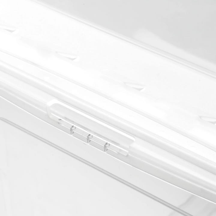 Clearbox — идеальное решение для хранения и сортировки различных вещей: от одежды до документов. Изготовлен из легкого и прозрачного материала, обеспечивает легкий доступ к хранимому содержимому. Кроме того, контейнер пыленепроницаемый, что защищает мелкие предметы. Возможность штабелирования прозрачных коробок экономит место. Однако самым большим преимуществом этого контейнера является инновационная система контроля воздуха, обеспечивающая вентиляцию или плотное запирание, в зависимости от положения крышки.