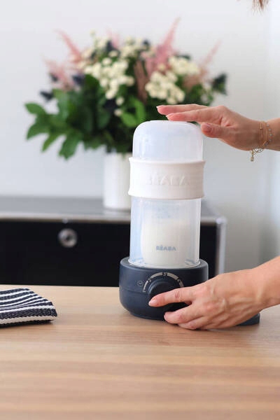 Практический обогреватель 2IN1 и стерилизатор для бутылок и банок с едой для младенцев для младенцев французского бренда Beaba. Равномерно нагревается благодаря быстрой системе отопления пара - бутылку за 2 минуты, а блюдо в небольшой банке - всего за 5.