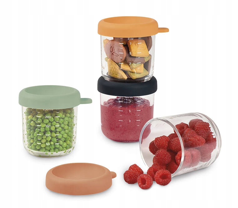 Набор из четырех баночек для хранения продуктов от французского бренда BEABA, емкостью по 250 мл каждая, изготовленных из стекла высочайшего качества.