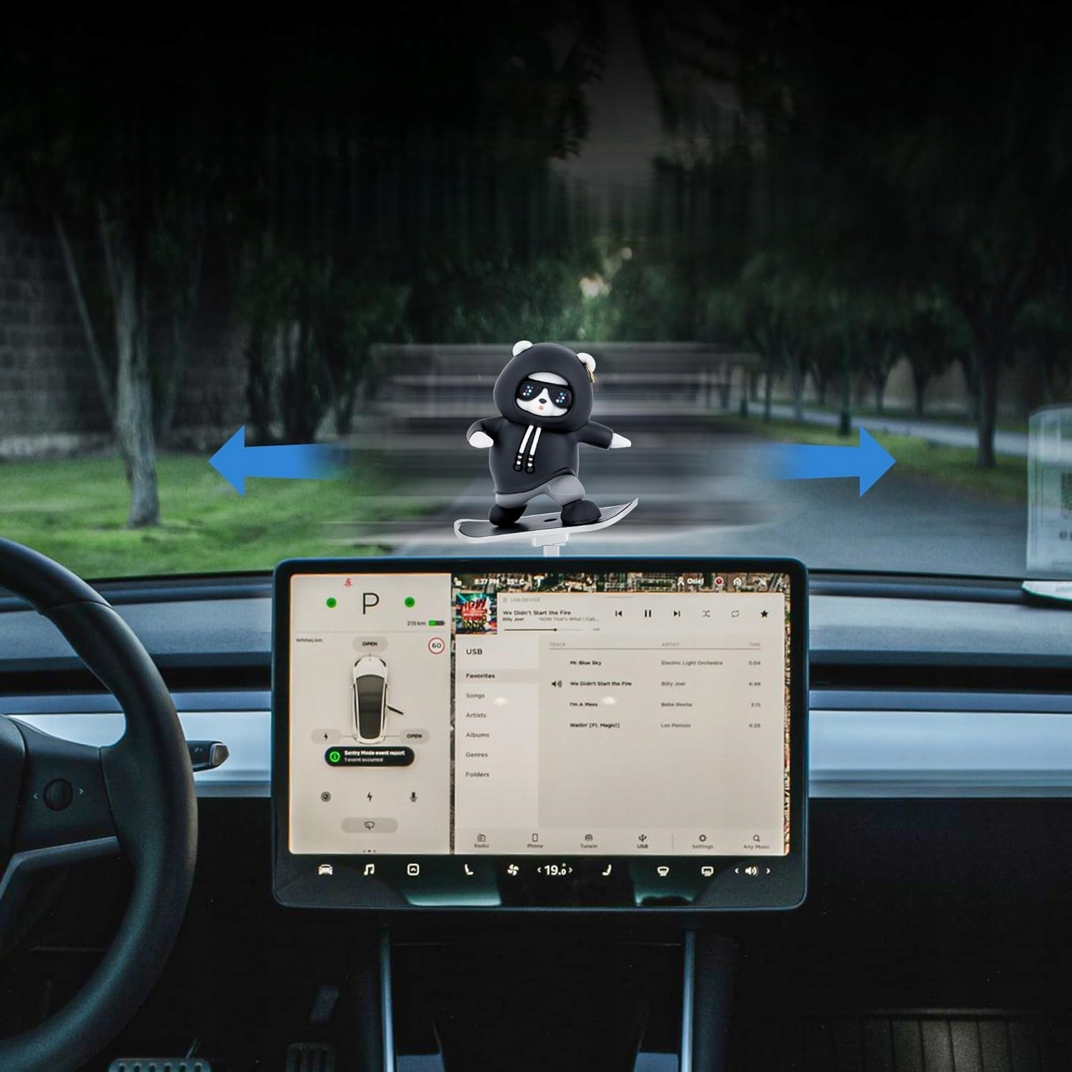 Этот плавающий плюшевый мишка-скейтборд с экраном станет милым дополнением к салону вашего автомобиля. Разработанный специально для автомобильных экранов, он представляет собой игривую фигурку медведя на скейтборде, который плавно движется вместе с движением автомобиля. Его уникальный дизайн придает приборной панели вашего автомобиля нотку причудливости, улучшая впечатления от вождения.