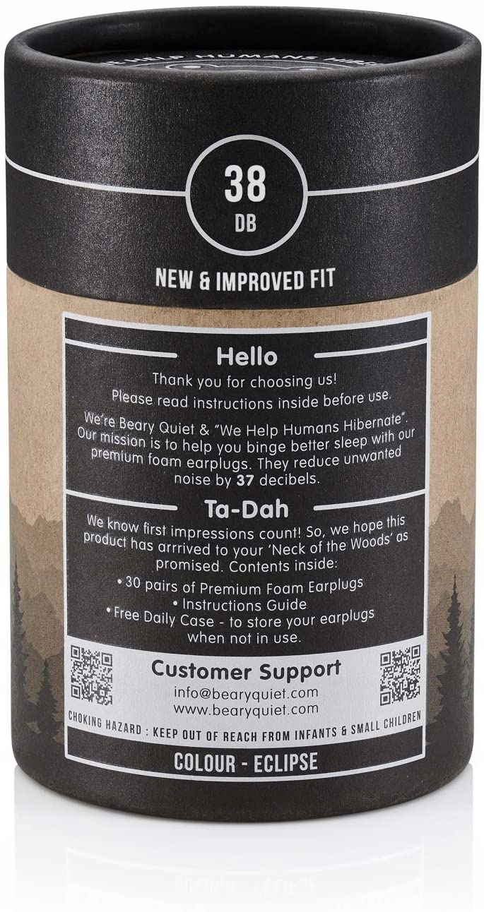 < Hibernić - Beary Quiet Soft Premium Foam ear plugs have been designed as a "noise reducing" solution for snoring partners and better sleep. Уменьшите нежелательный шум на 38 децибел, что позволит получить глубокую гибернацию и активацию REM (быстрое движение движения глаз). ✔︎ To Beary - наши новые и улучшенные ушные пробки теперь уменьшают шум на 38 дБ SNR. Активируйте спячку, вставив нашу мягкую пробку в слуховой канал, чтобы создать уплотнение расширения, которое замолчает нежелательные звуки гризли. Идеально подходит для ночного гардероба, идеально подходит для сотрудников Night Shift! ✔︎ Здоровье и комфорт - соответствуют размеру уха, просто катайте из пенопласта. Мы также гипоаллергенные, поэтому использование нашего продукта на коже безопасно. Мы используем бесплатные коробки BPA для обеспечения хорошего здоровья. Ох, и мы не тестируем на животных ... никогда! ✔︎30 пар в наборе