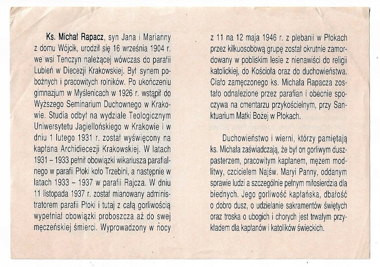 Михал Рапач Бетфификация Плоки возле Требинии Мисленис Тензин возле Любинь