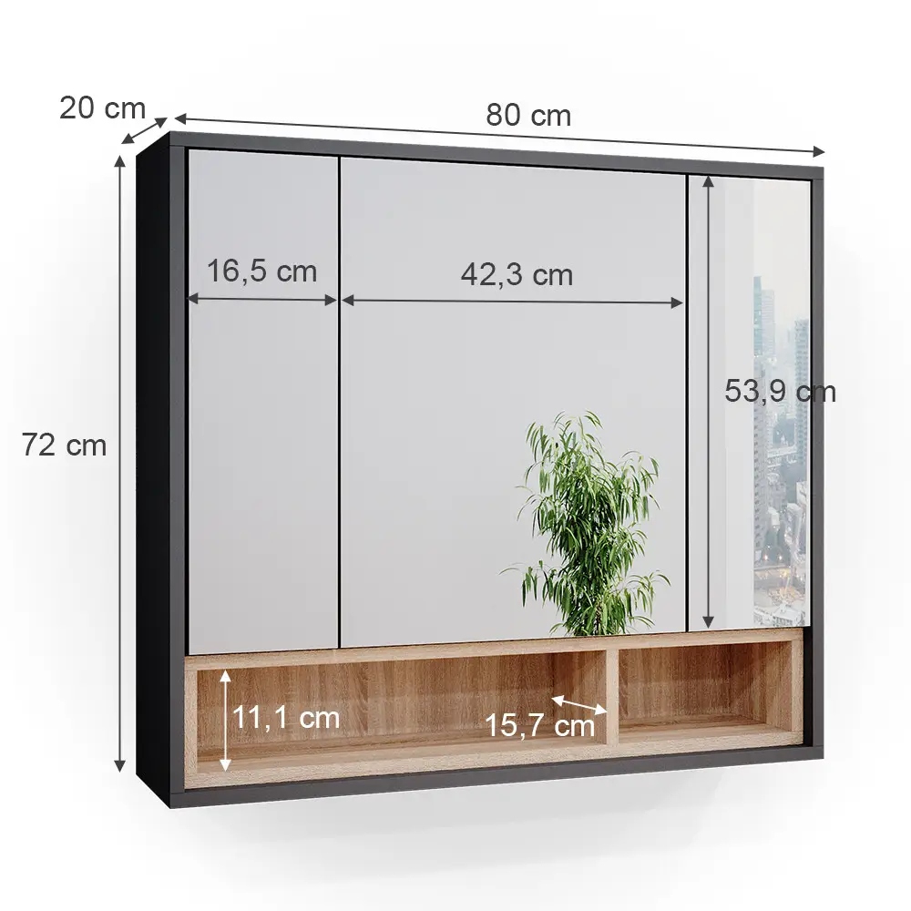 Зеркальный шкаф в ванной комнате "Beatrice", Anthracite/Sonoma, 80 x 72 см, Vicco