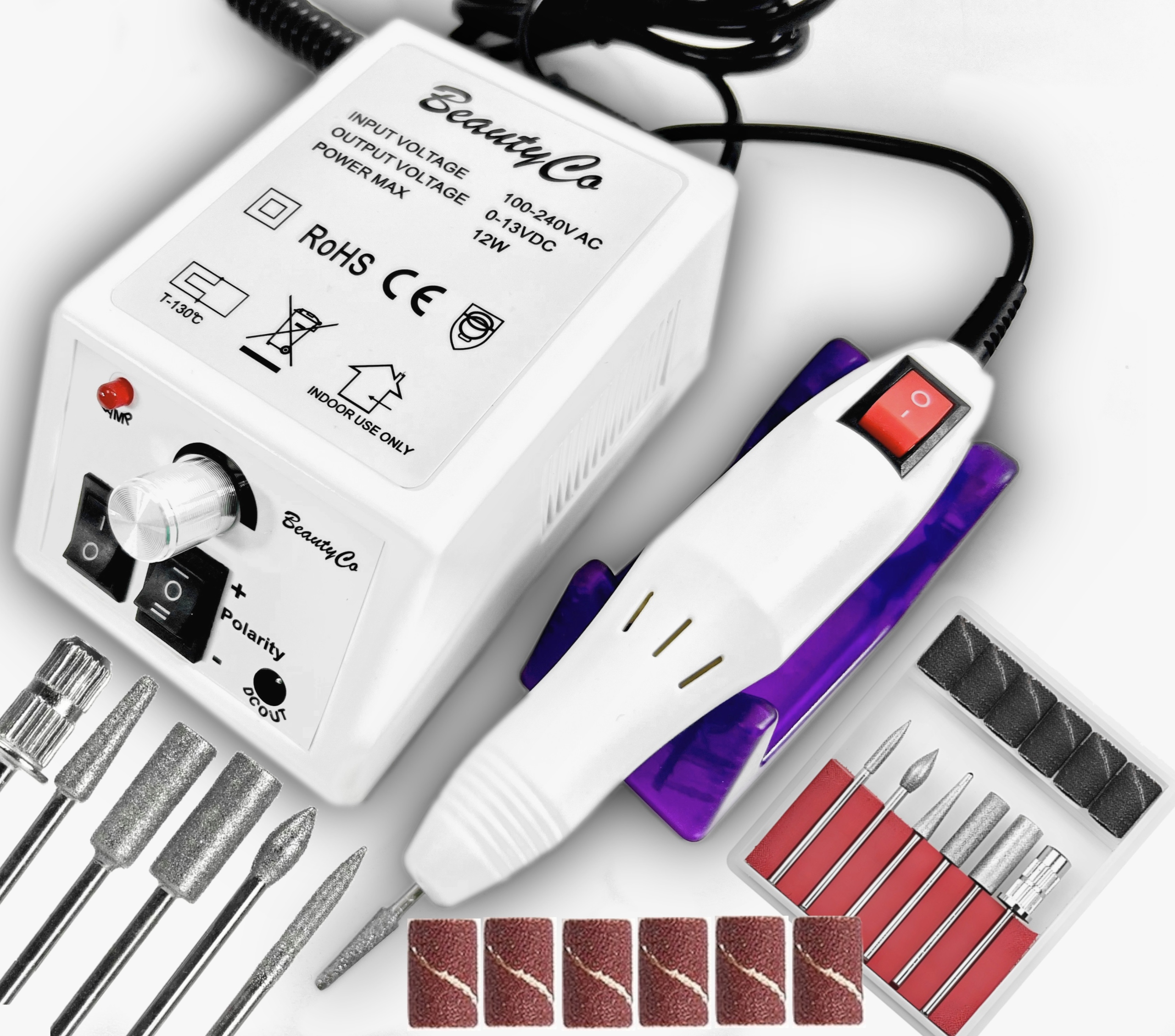 BeautyCo МАНІКЮР ПЕДИКЮРНА МАШИНКА ДЛЯ ВИРУБЛЮВАННЯ НІГТІВ + НАБІР ФРЕЗЦІВ