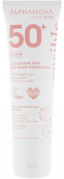 Солнцезащитный крем для детей с очень высокой защитой SPF 50+, гипоаллергенной, без запаха. Безопасность - самая важная вещь в уходе за ребенком. Формула нового поколения, обогащенная органическими алоэ вера с увлажняющими свойствами. Первый фильтр UVA, который укрепляет солнцезащитный крем, обеспечивая в 2 раза больше защиты, чем европейский стандарт. Это солярий для детей содержит более 74% натуральных ингредиентов и 40% органических ингредиентов. Его легко распространять благодаря консистенции жидкости. Утилизация и переработка. Продукты Sunning, доступные в настоящее время на рынке, обеспечивают защиту от радиации UVA, соответствующую 1/3 защиты, и 2/3 против излучения UVB, то есть около 20 для индекса 50+. Alphanova Daily Sun® вводит инновации благодаря новому комплексу UVA Boost, с в 2 раза больше защиты от UVA Gradiation, чем европейский стандарт: наша защита от излучения UVA почти так же высока, как защита от излучения UVB. В результате кожа лучше защищена, уменьшая старение кожи, связанное с воздействием и коричневыми пятнами. Защита