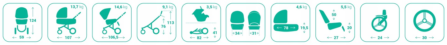 Коляска Torino имеет удобную раму с амортизацией, ограничивающей вибрации, передаваемые на конструкцию. Flexy Wheels позволяют комфортно перемещать коляску и не требуют подкачки. Возможность компактного складывания будет оценена по достоинству, например, при транспортировке в автомобиле.
