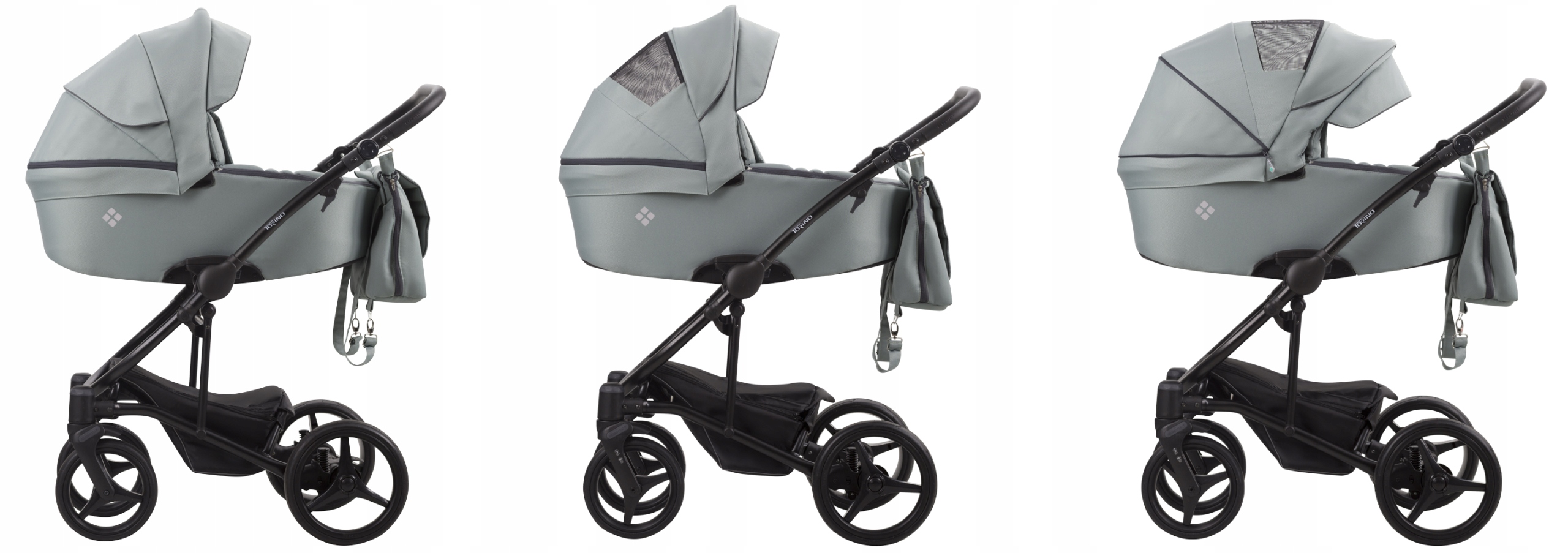 Гондола коляски покрыта обивкой, что придает ей привлекательный вид. Навес изготовлен из материала. Удобная система регулировки капюшона и чехол с дополнительной открытой панелью защитят ребенка от ветра и палящего солнца. Внизу гондолы имеются вентиляционные решетки, позволяющие поступать дополнительному воздуху. Регулируемая ручка в гондоле позволяет разместить ребенка в более высоком положении.
