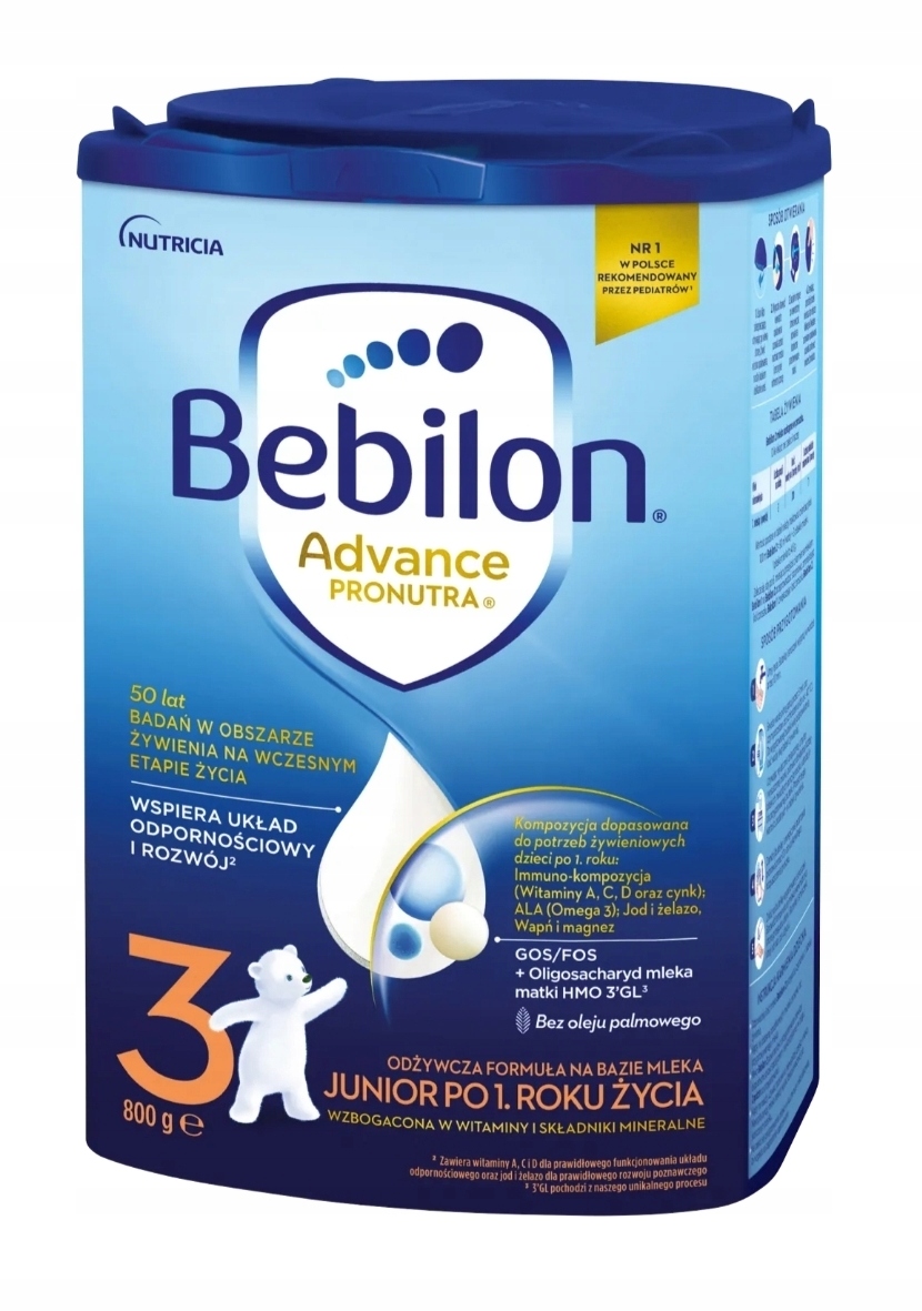Bebilon Advance Prouttra 3 Junior - это питательская формула, основанная на молоке, обогащенном витаминами и минералами , подходящей для использования в качестве элемента правильно сбалансированной детской диеты, которому в возрасте 1 года.