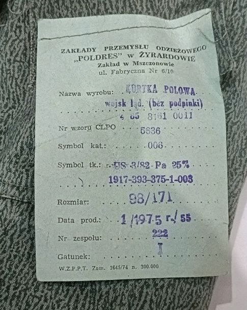 Куртка-бечатка WZ. 5636 MORA выкройка 68 новинка с биркой 1975 г. размер: 171/98