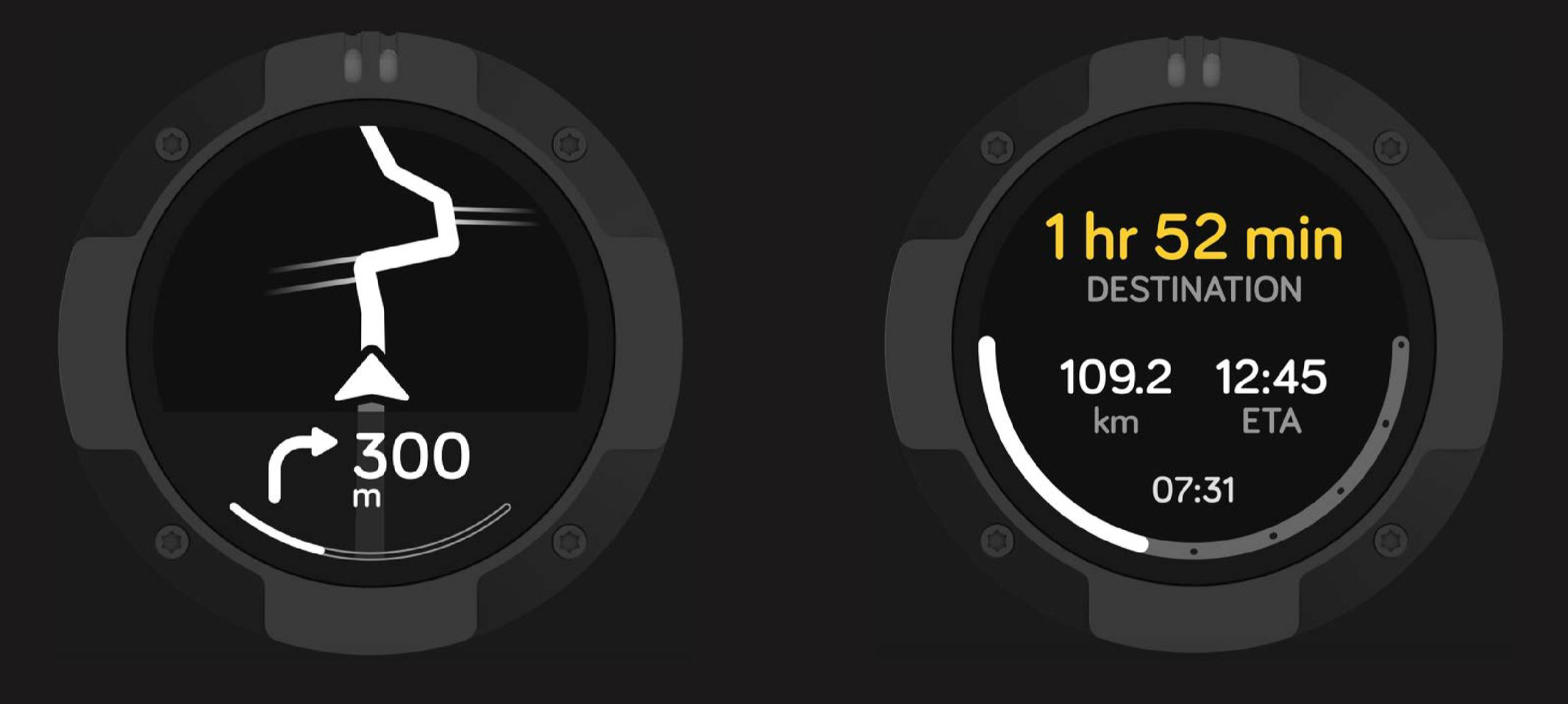 Сигналы, показывающие на главном экране, разработаны таким образом, чтобы на простом, быстром и интуитивно понятном экране они сообщают о предстоящих изменениях направлений во время поездки. Другие дороги, принадлежащие