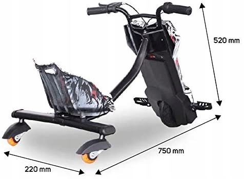 Drift Trike, который понравится вашим детям, настоящий электрический квадроцикл для детей, который позволит вашему ребенку спокойно и безопасно развлечься. Благодаря 3-м колесам ребенок впервые сможет почувствовать, как дрифтовать.