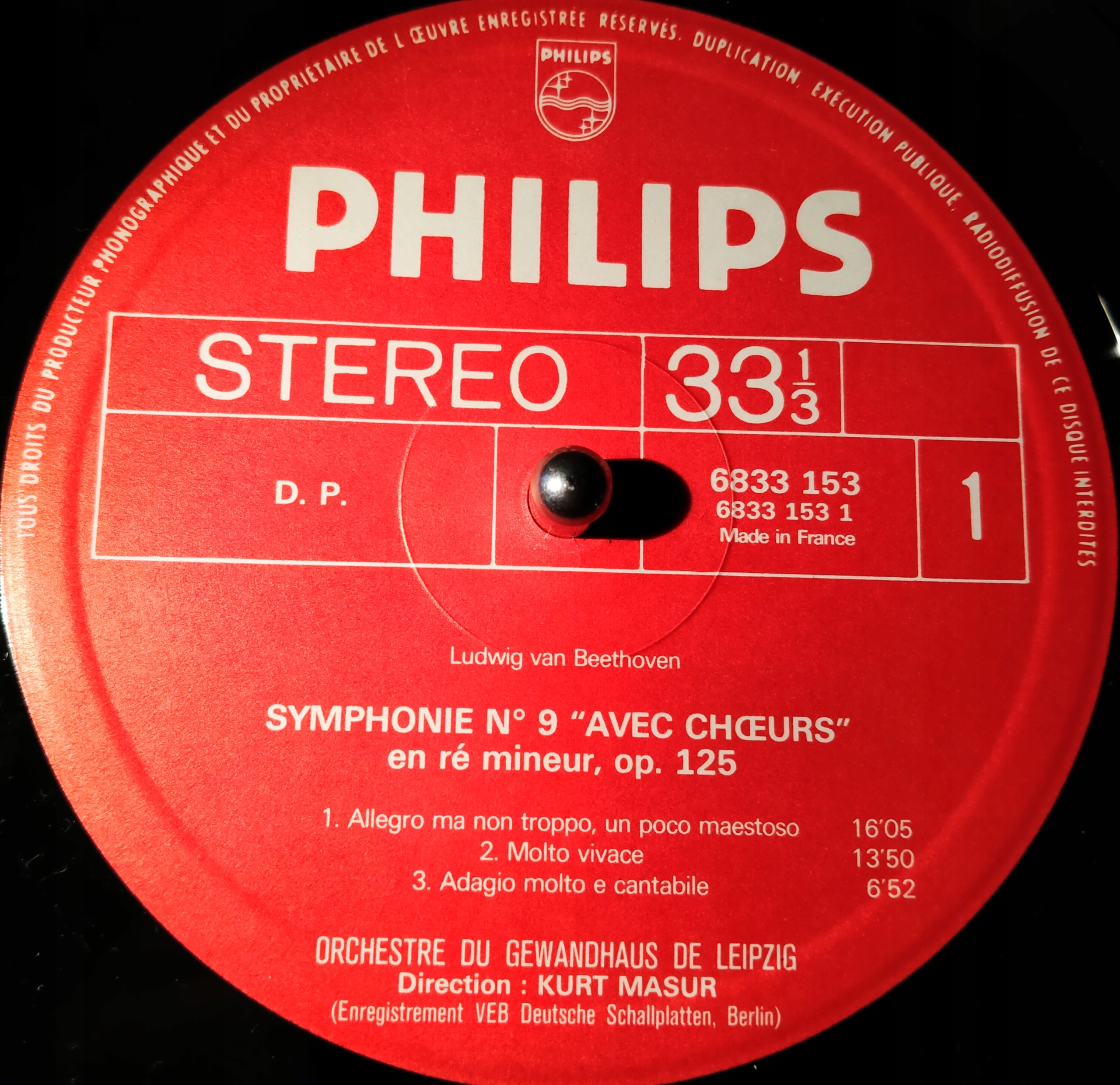 Bethoven = Symphoni № 9 (Ode to Joy) LP Leipzig /Kurt Masur /Philips