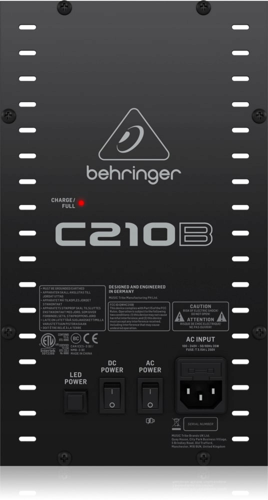 BEHRINGER C210B — модульная активная акустическая система мощностью 160 Вт с 8-дюймовым басовым динамиком, четырьмя 2,5-дюймовыми высокочастотными динамиками и аккумулятором.