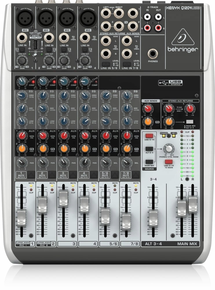 BEHRINGER XENYX Q1204USB — Сверхмалошумящий аналоговый микшер XENYX Q1204USB с 4 микрофонными предусилителями XENYX и индивидуальным фантомным питанием.