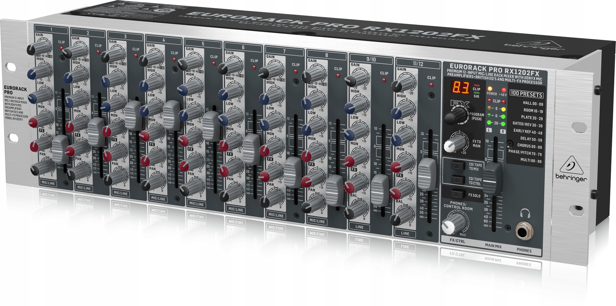 behringer rx1202fx v2 -12-канальный линейный микшер для монтажа в стойке с предварительными усилителями микрофона Xenyx, классической «британской» коррекции и эффектора эффекта