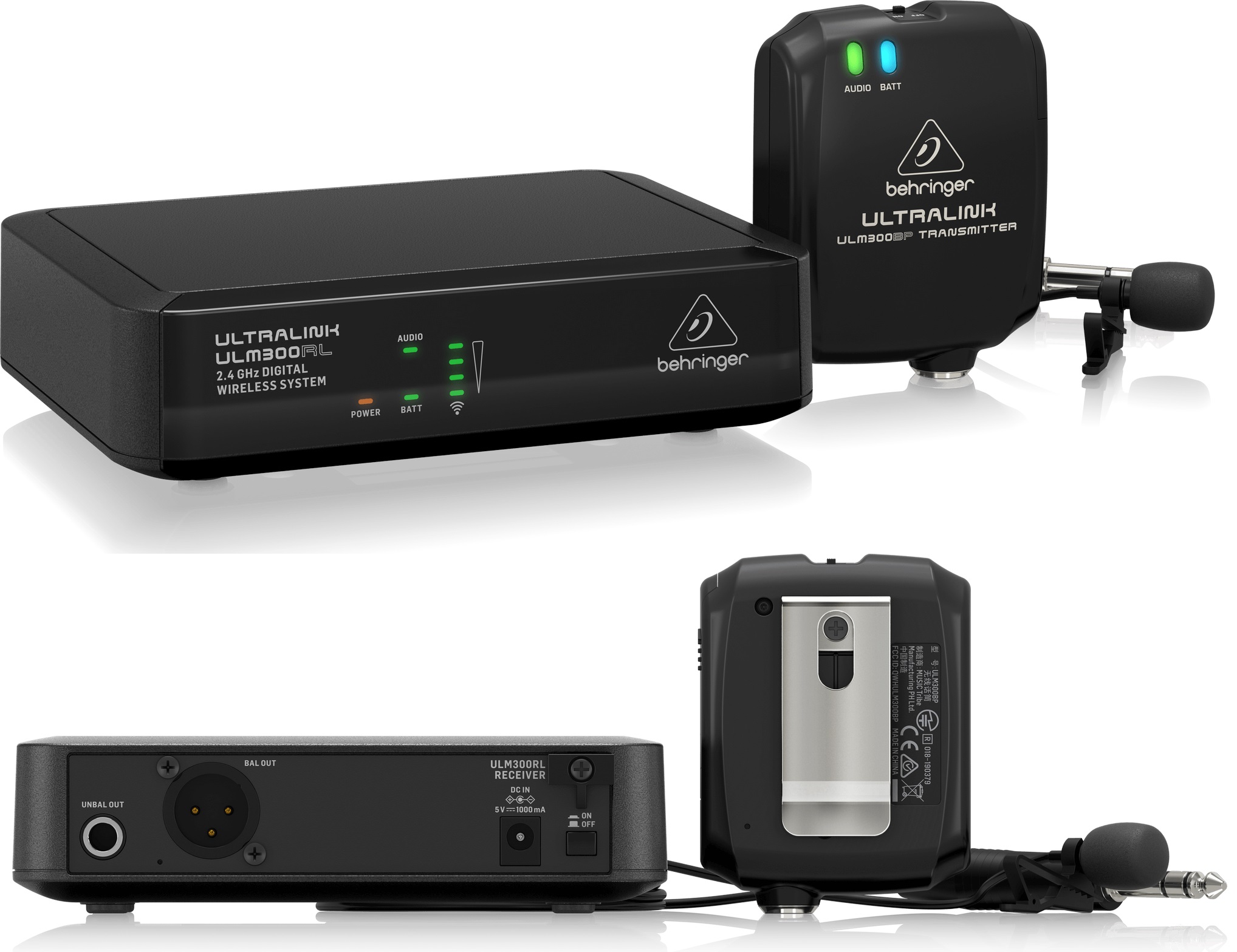 Behringer ULM300LAV — беспроводная система с поясным передатчиком и петличным микрофоном. В комплект входят петличный микрофон ULM300L, передатчик ULM300BP и приемник ULM300RL. Капсюль микрофона и передатчик разработаны для обеспечения высококачественного звука, оптимизированного для речи. Комплект работает в диапазоне 2,4 ГГц.