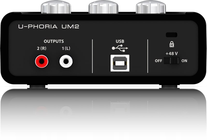 BEHRINGER U-PHORIA UM2 — аудиоинтерфейс USB 2x2, предназначенный для записи инструментов и использования микрофонов.
