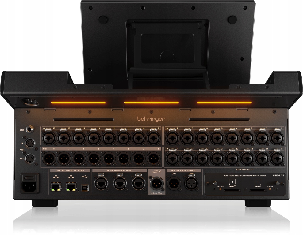 Behringer Wing Compact -48-канальная цифровая консоль с 24 MIDAS-предусилителями из Pro Series, 28 стереоградных рельсов, 13 моторизованных 100-мм ползунков и 10-дюймовый сенсорный экран, в черном компактном корпусе