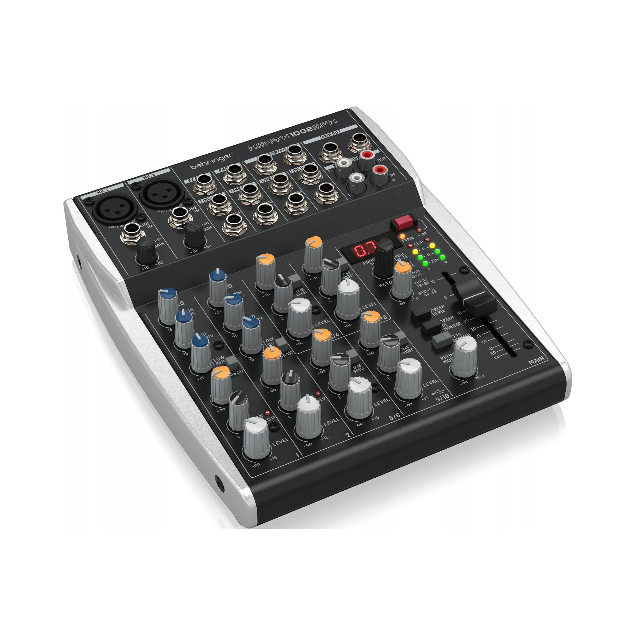 Behringer XENYX 1002SFX — 10-канальный компактный аналоговый микшер, предназначенный для потоковой передачи, подкастинга и записи, со встроенным процессором эффектов Klark Teknik