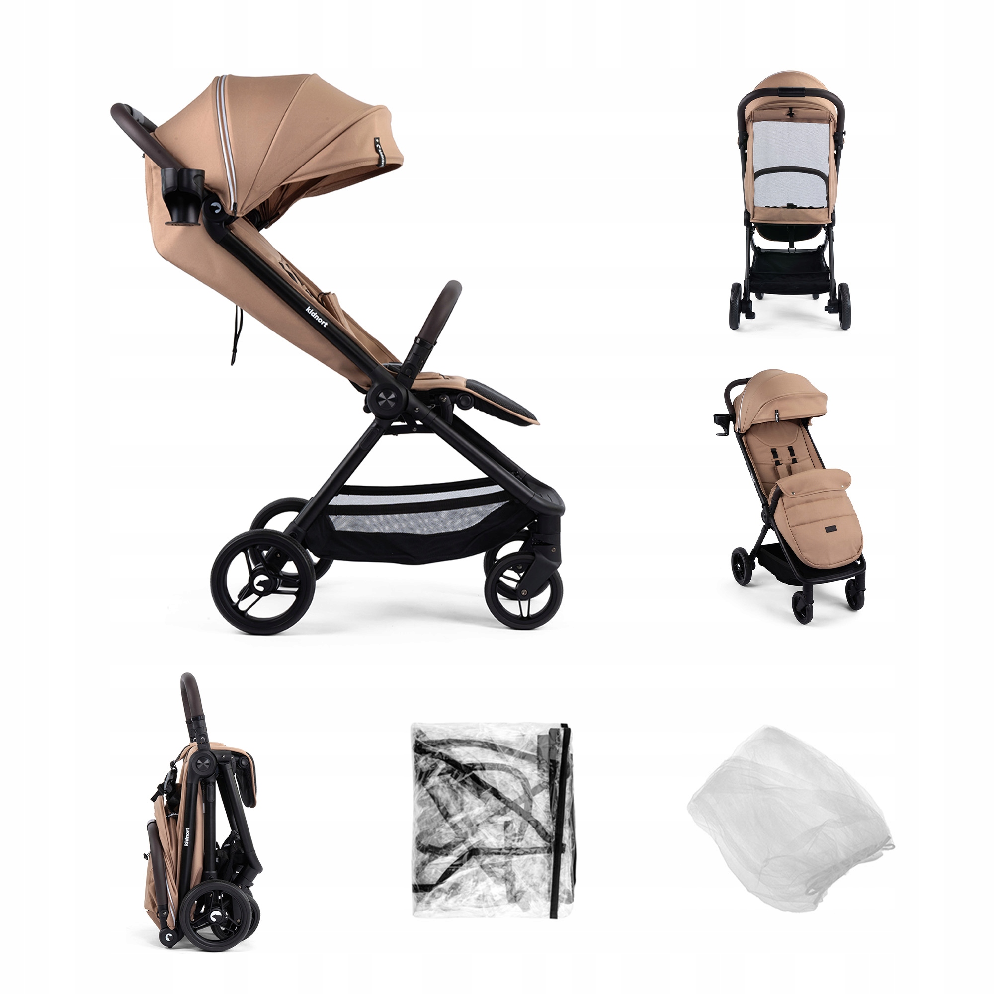 Это свет (6,8 кг), функциональная коляска с простой системой складывания . Оснащенный пятью точечными ремнями с оболочками, роторным стержнем 360 °, анти -скольжением и регулируемой спинкой и подвеской для ног обеспечивает безопасность и комфорт ребенка. Увеличенный навес и вентиляционные окна заботятся о циркуляции воздуха в любую погоду. резиновая, мягкие колеса (спереди 6 ", задние 8") гарантируют плавное вождение на различных поверхностях. Набор включает в себя практические аксессуары: дождь, комарская сеть, крышка ног и чашки.