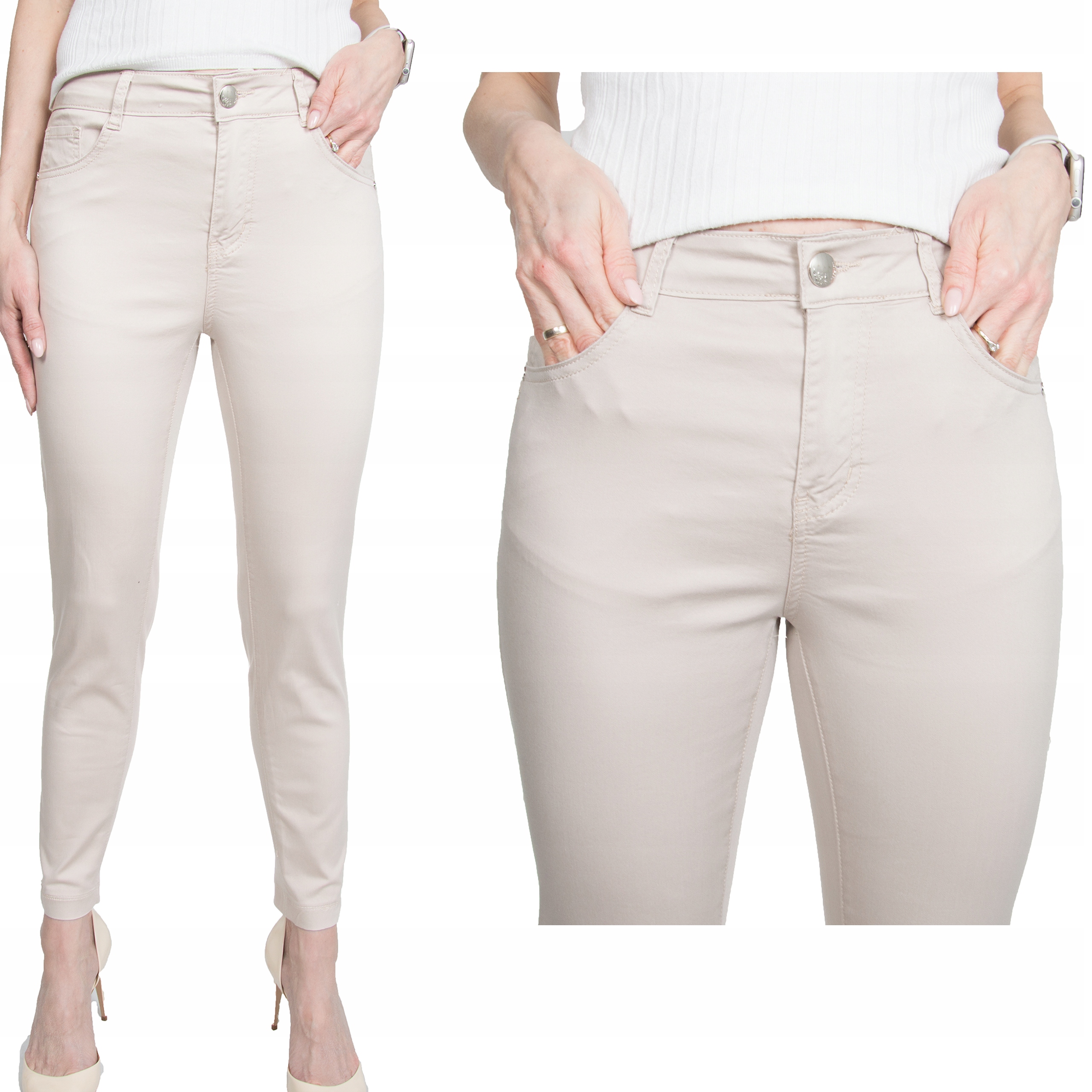 #Beige Летние штаны Сигарильо 7/8 размер отжимания 42