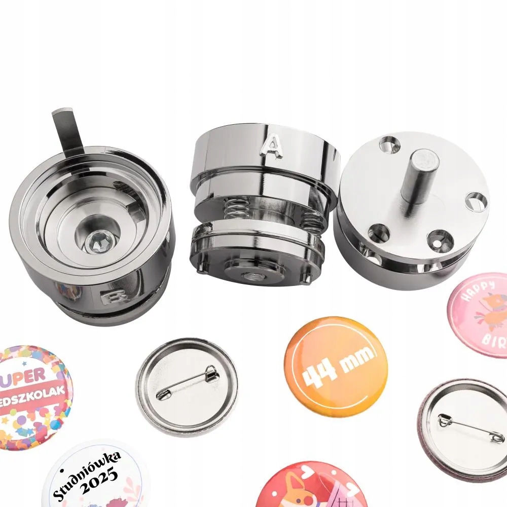 ✅ Все в одном комплекте – вы получаете полную комплектацию: станок и четыре формы диаметром 37, 44, 58 и 75 мм. Ничего дополнительно покупать не нужно, можно сразу приступить к изготовлению значков.