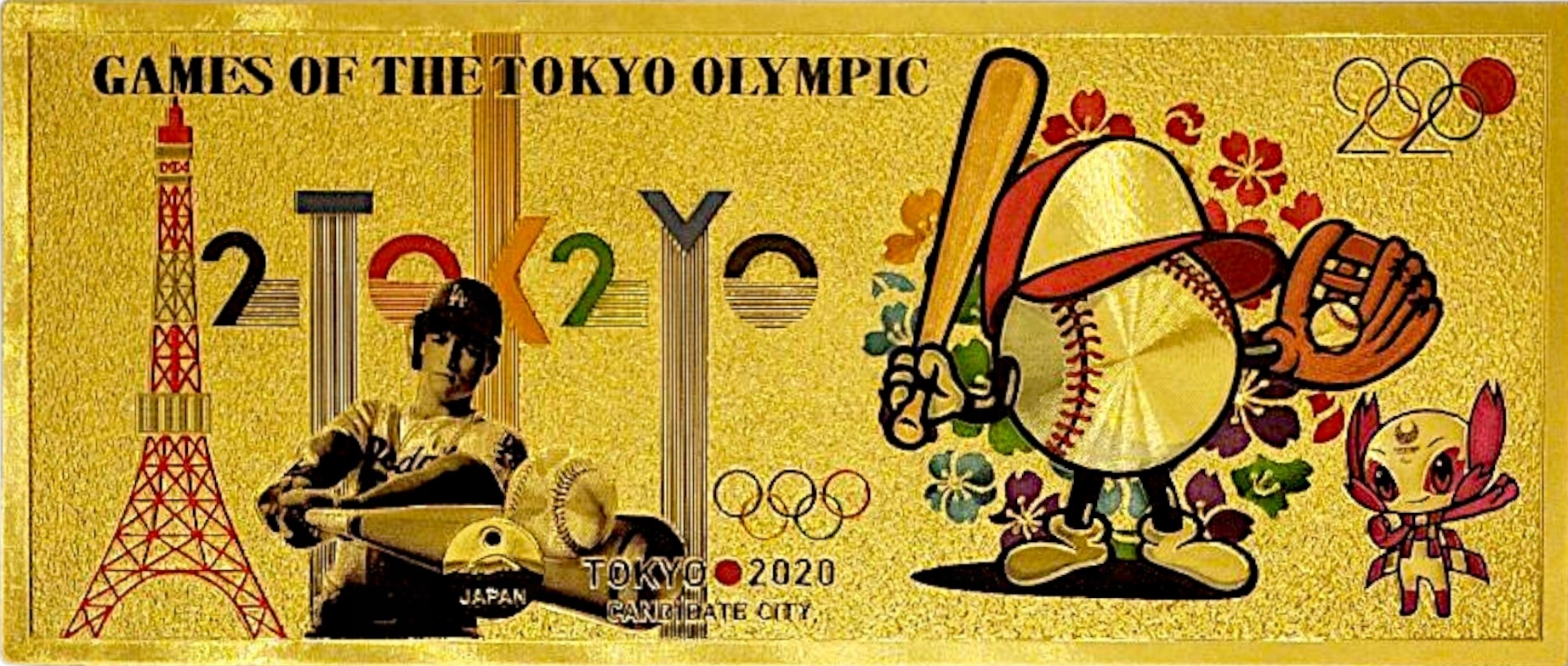 Коллекционная банкнота из ПВХ, посвященная Олимпийским играм 2020 года в Токио, бейсболу