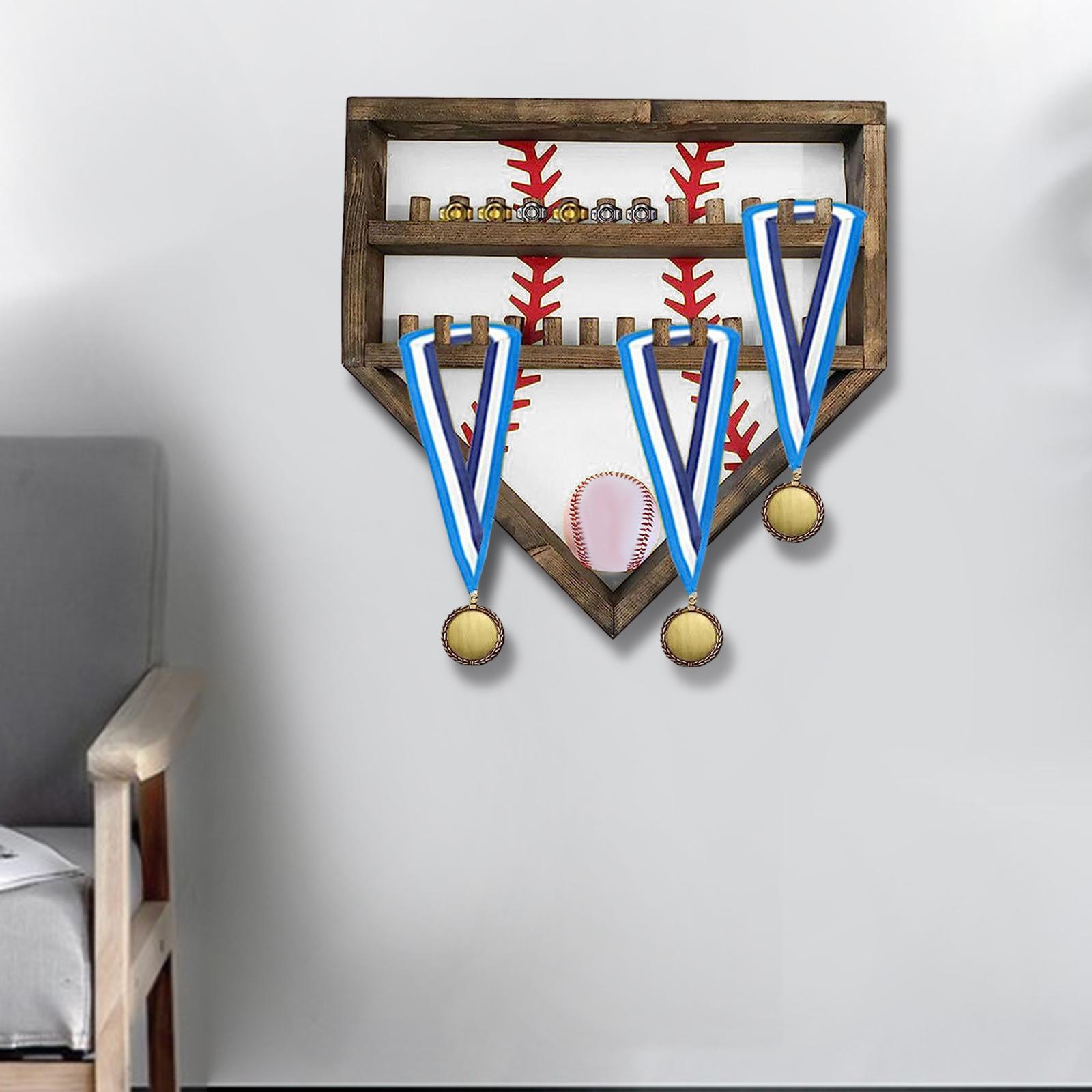 [уникальная конструкция]: деревянные бейсбольные ручки, каждая деревянная рама имеет вмешательства, которые обеспечивают безопасные шарики на месте, а дюбели предназначены для подвесных медалей.