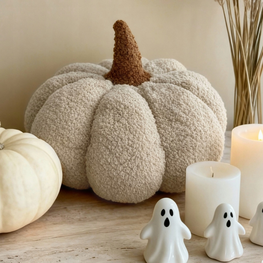 БЕЖЕВАЯ ДЕКОРАТИВНАЯ ПОДУШКА «ТЫКВА» УКРАШЕНИЕ НА ХЭЛЛОУИН 35х35см