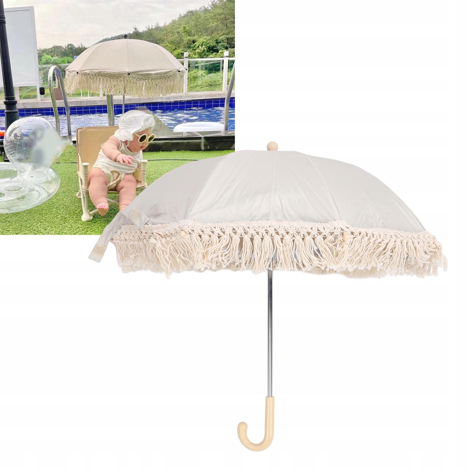 Бежевый детский уличный зонт с бахромой, устойчивой к ультрафиолетовому излучению, для пляжа и сада.