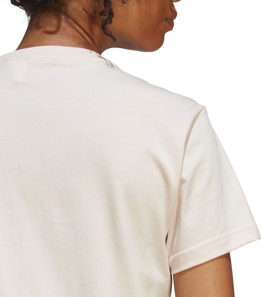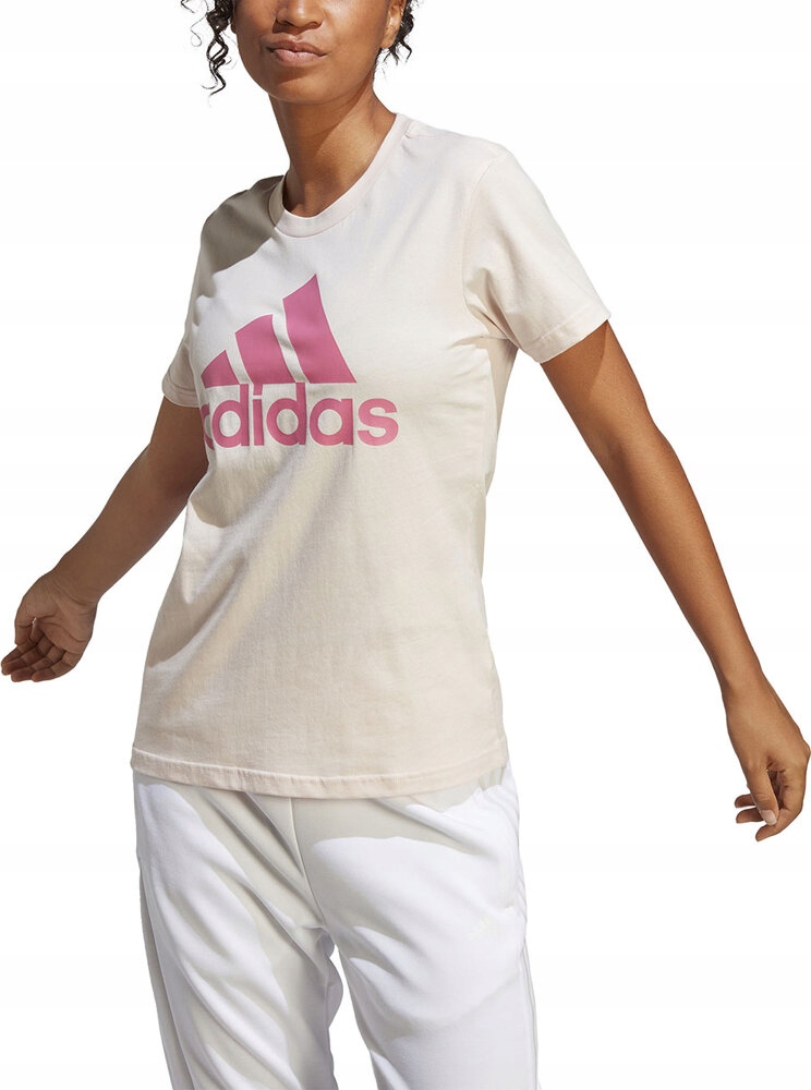 Женская футболка adidas представляет собой целостный дизайн с большим логотипом спереди, подчеркивающим аутентичный характер модели.