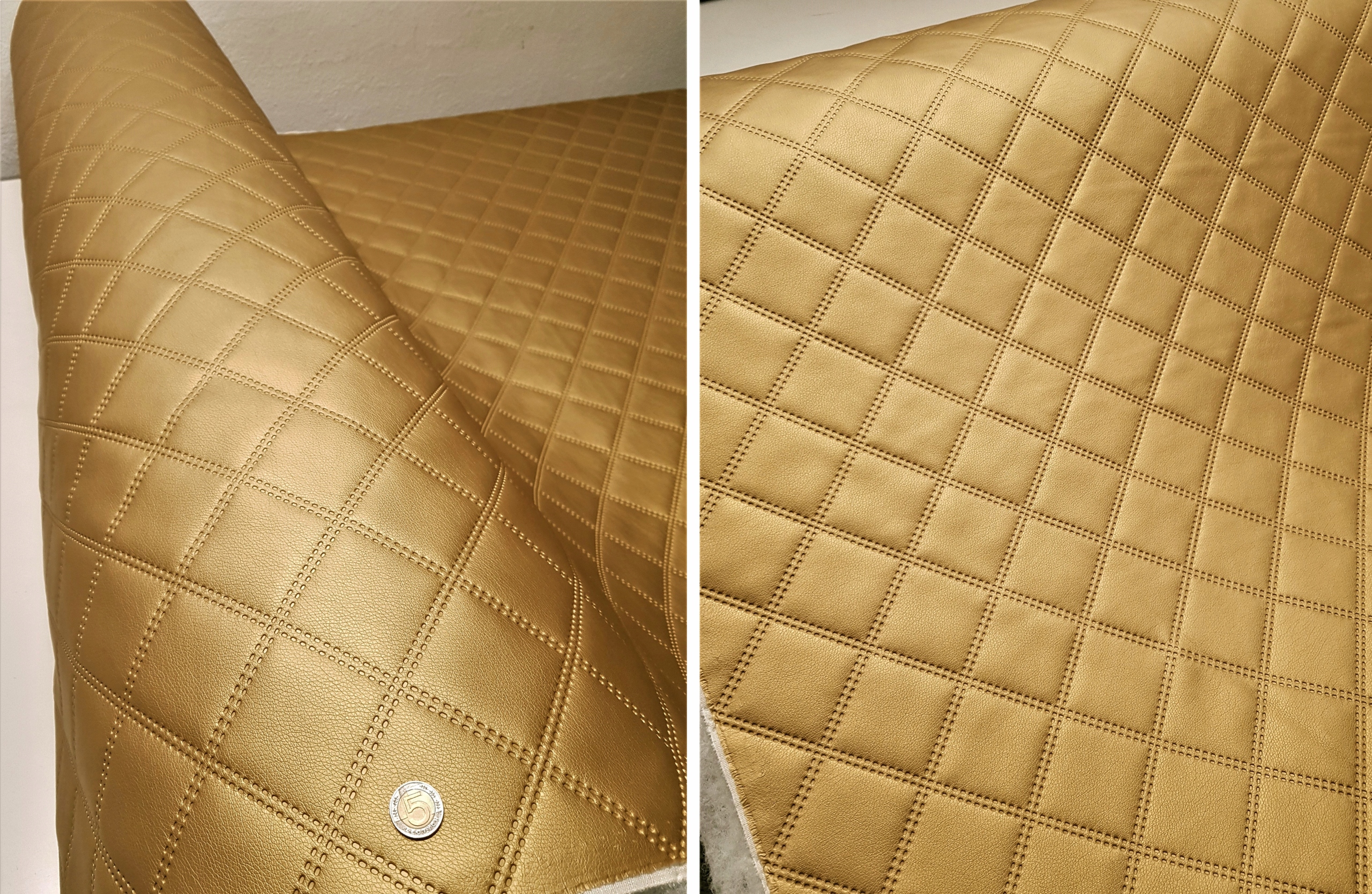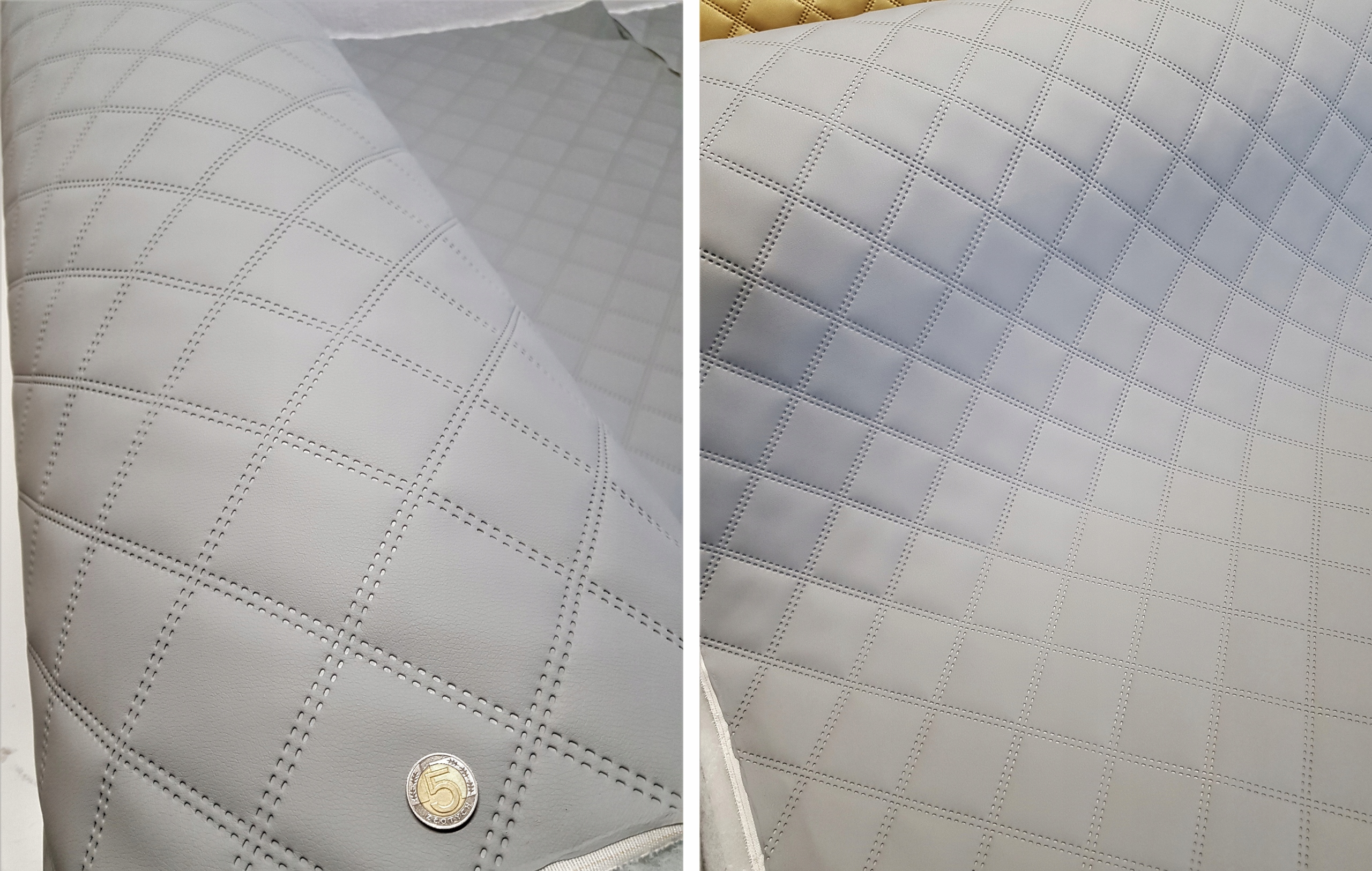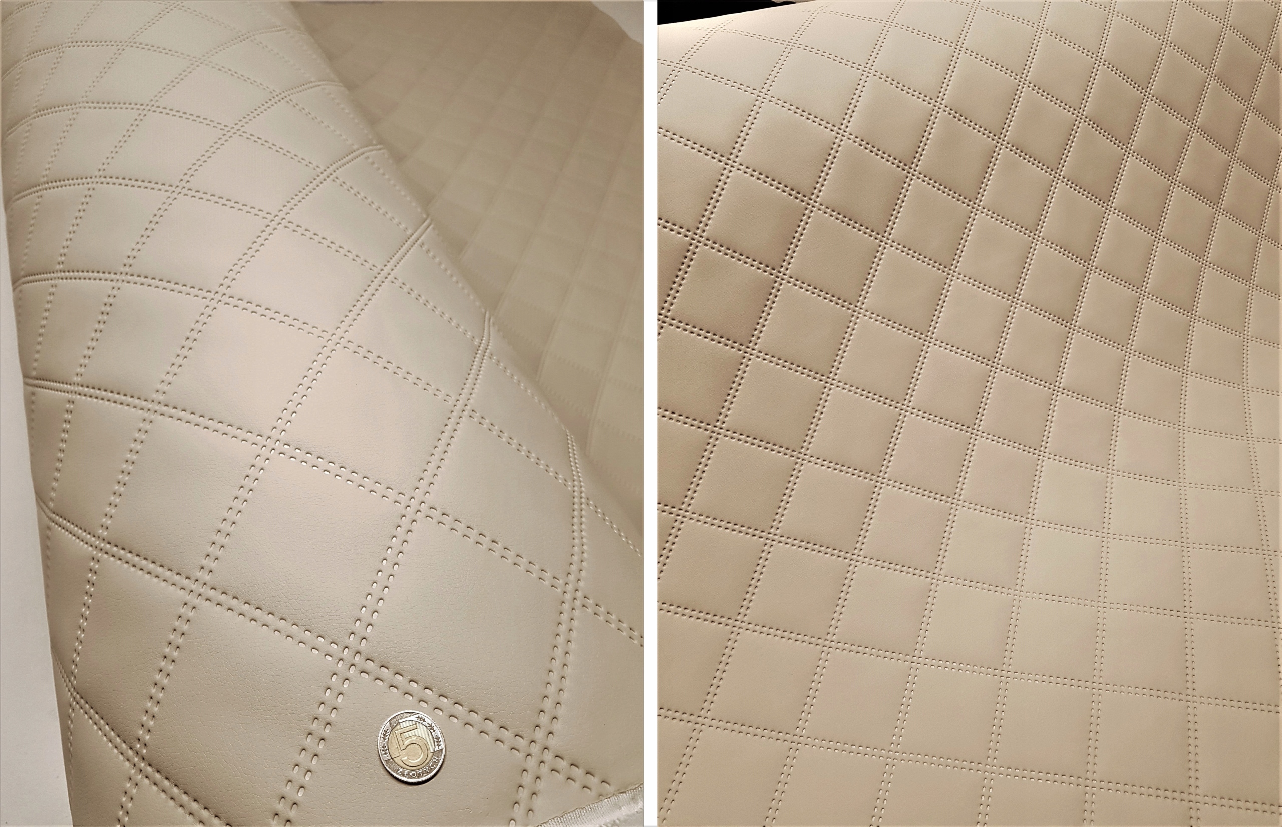 Обивка из простеганной ультразвуком эко-кожи (безрезьбовой) с узором 7х7см с глубоким 3D эффектом, облицована толстым слоем теплоизоляции 250гр/м2. Он оправдает ожидания даже самых требовательных клиентов. Новый дизайн!
