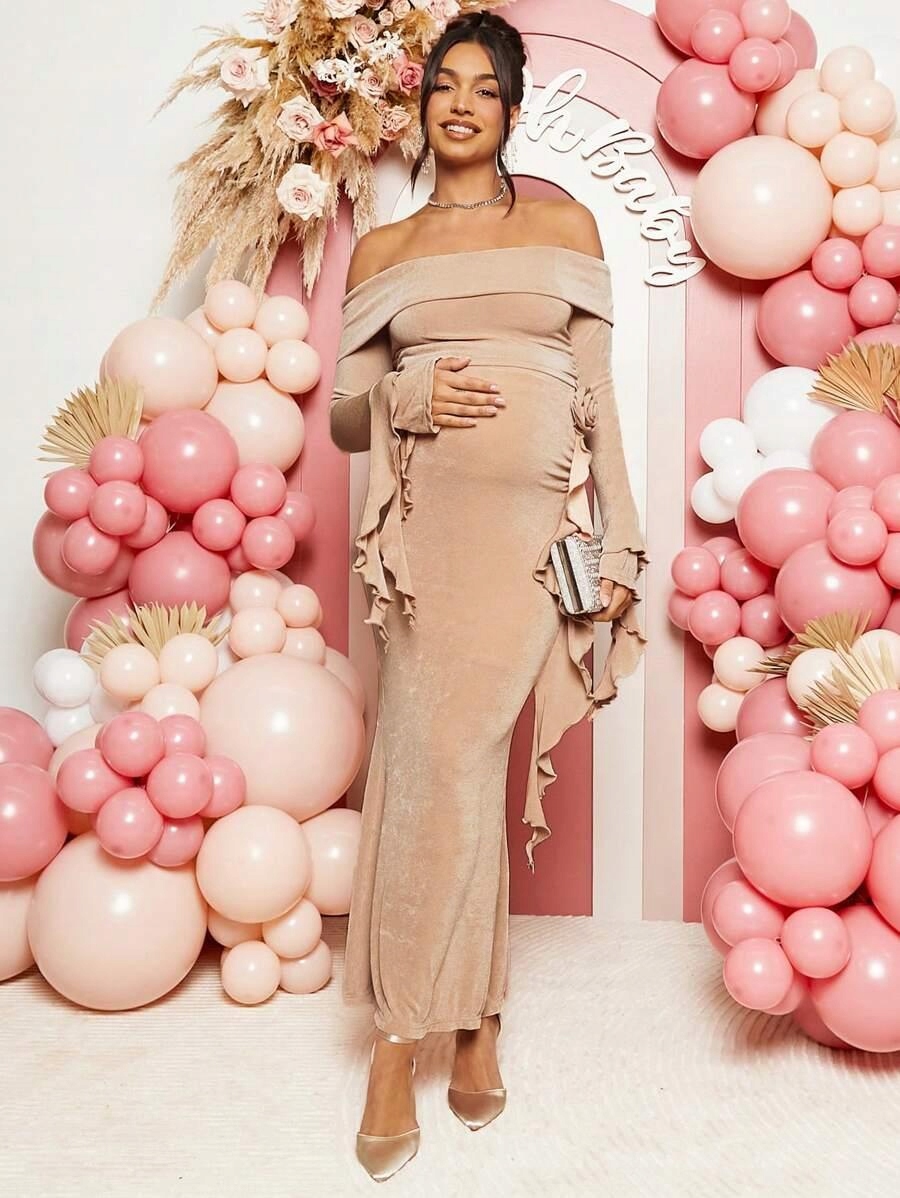 Бежевая беременная набор двух -топ -испанская юбка Shein 38