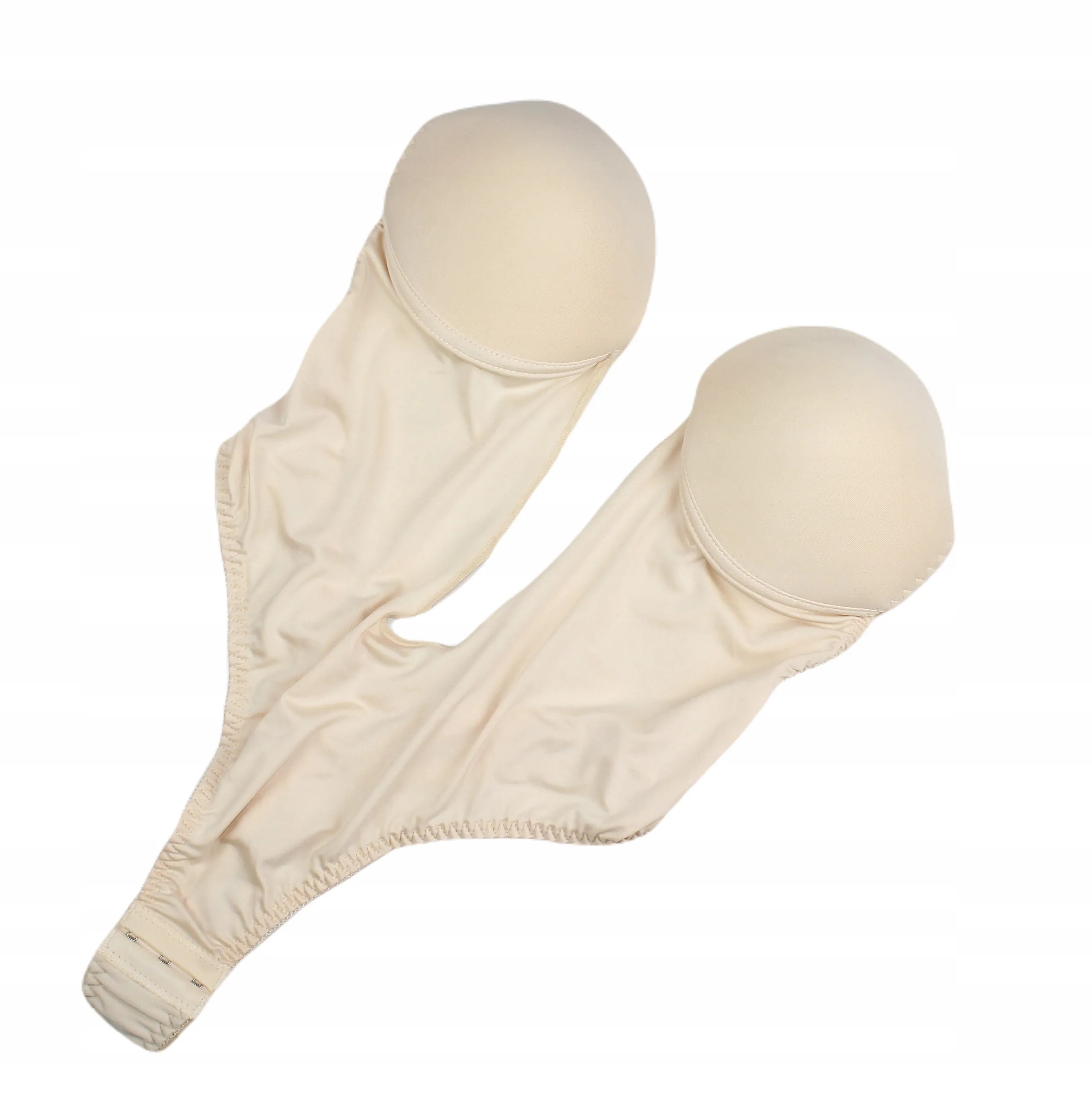 Бежевое боди с вырезом, моделирующие стринги под платье S 36