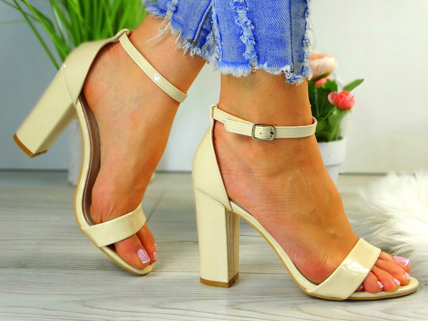 ЭЛЕГАНТНЫЕ БЕЖЕВЫЕ САНДАЛИИ НА СТАБИЛЬНОМ ШИРОКОМ КАБЛУКЕ