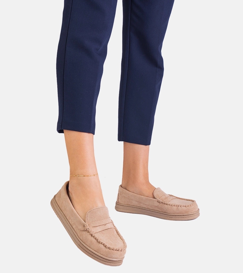 Бежевые женские мокасины из экозамши Sevilia, размер 38.