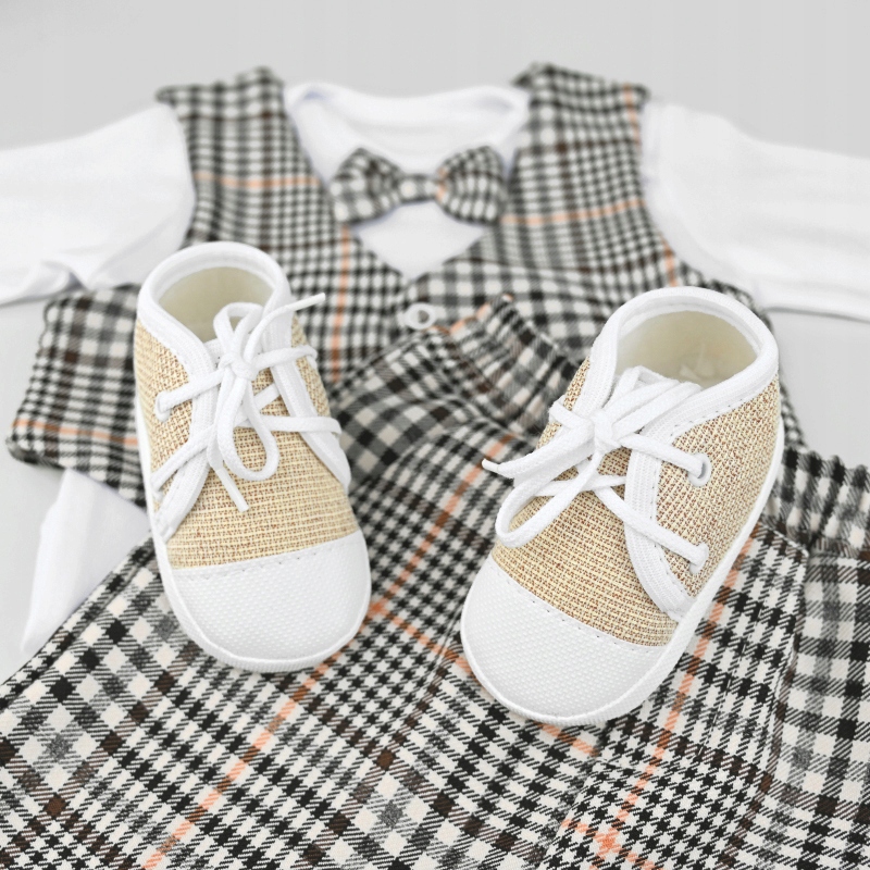 Бежевые кроссовки — предложение для мам, которые планируют слегка спортивный наряд на крещение сына.