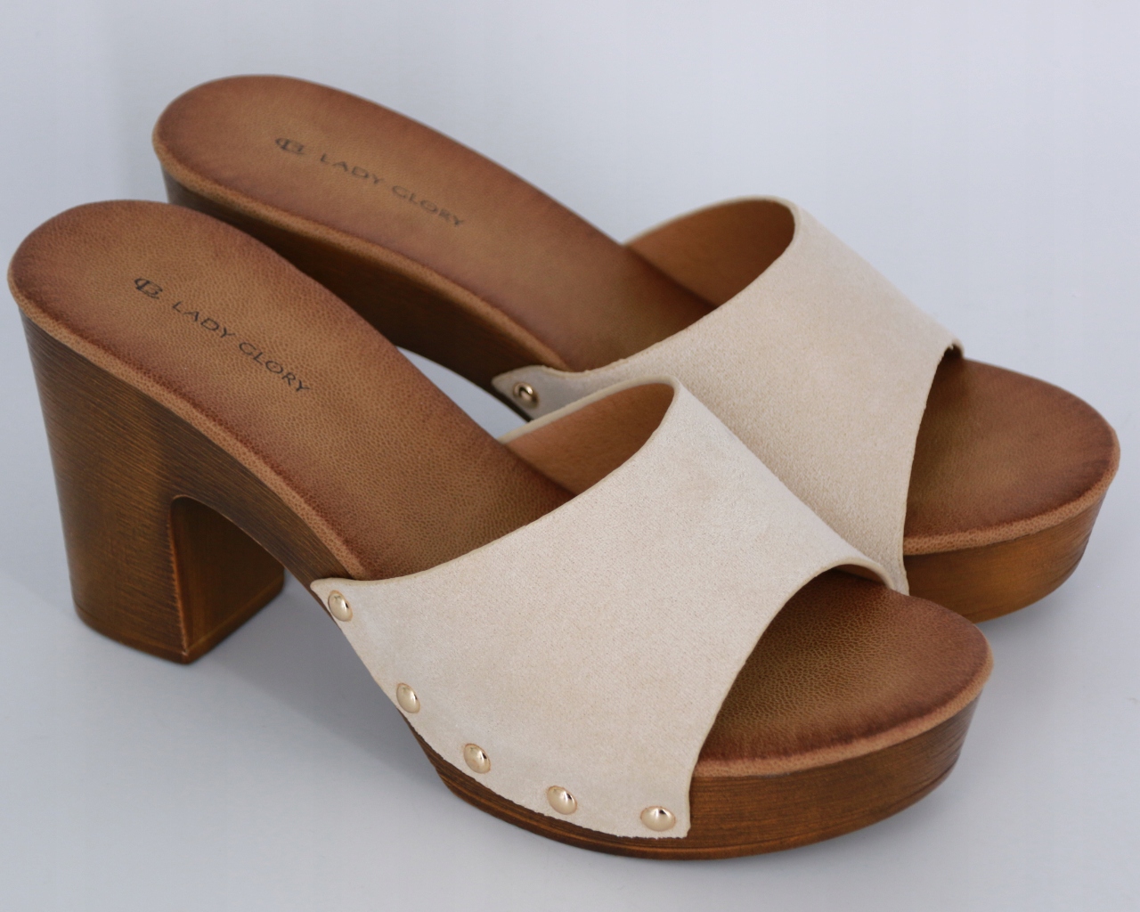 бежевые каблуки с выделенными замшевыми шлепанцами с шпильками 39