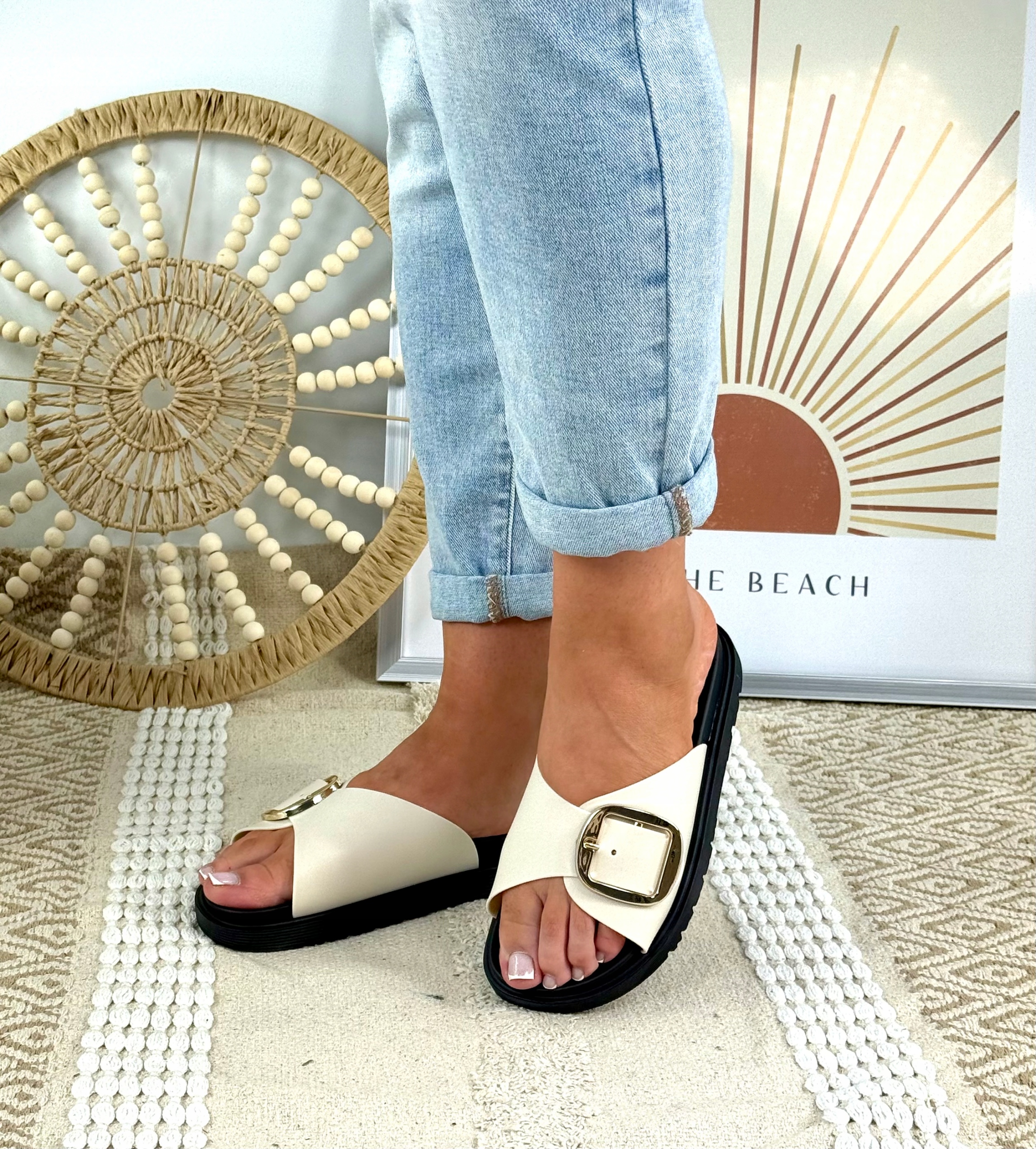 Женские бежевые шлепанцы с плоской мягкой удобной подошвой. Идеально как повседневная обувь. Они также будут легко адаптироваться к элегантным стилизациям. Профилированная вставка обеспечивает комфорт использования. Сшитая подошва приводит к более длительной прочности обуви.