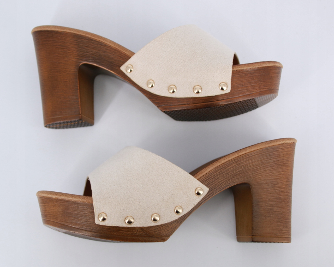 БЕЖЕВЫЕ САБО НА КАБЛУКЕ, ЖЕНСКИЕ ЗАМШЕВЫЕ ТАПОЧКИ С КЛЕПКАМИ 41