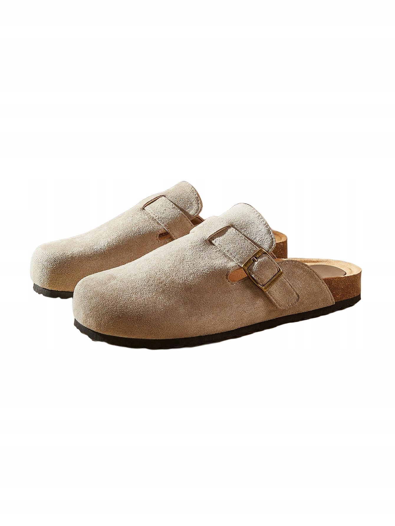 БЕЖЕВІ ПЛОСКІ ШЛЬОПАНЦІ ВБУДОВАНІ ДЕКОРАТИВНІ ПРЯЖКИ ЗАМША ЕКОШКІРА