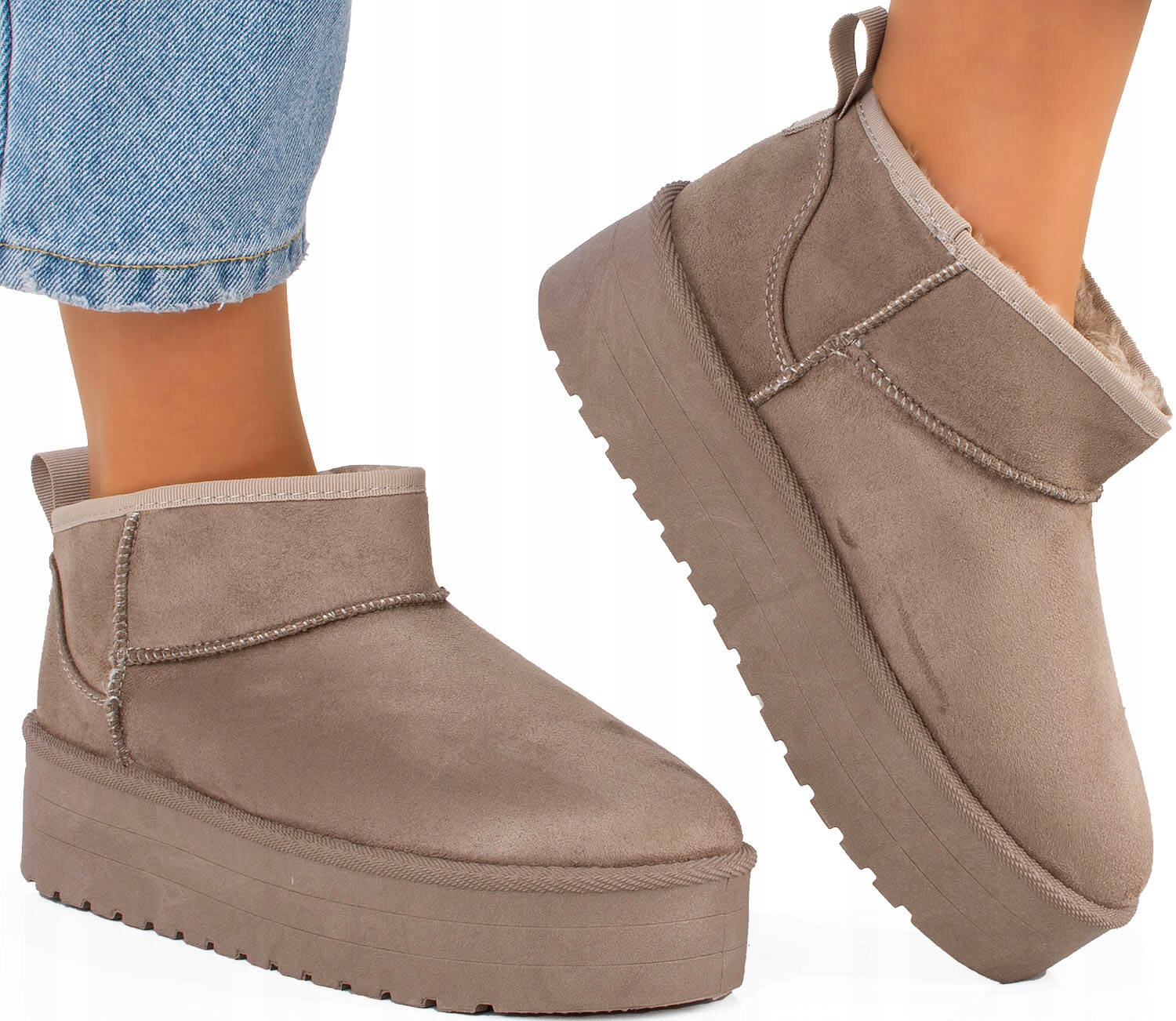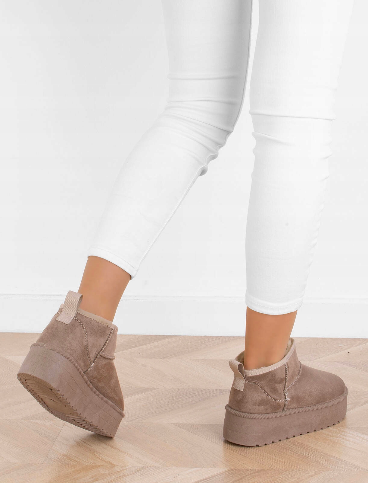 БЕЖЕВЫЕ СНЕЖНЫЕ БОТИНКИ С УТЕПЛЕНИЕМ, БОТИНКИ НА ПЛАТФОРМЕ 38