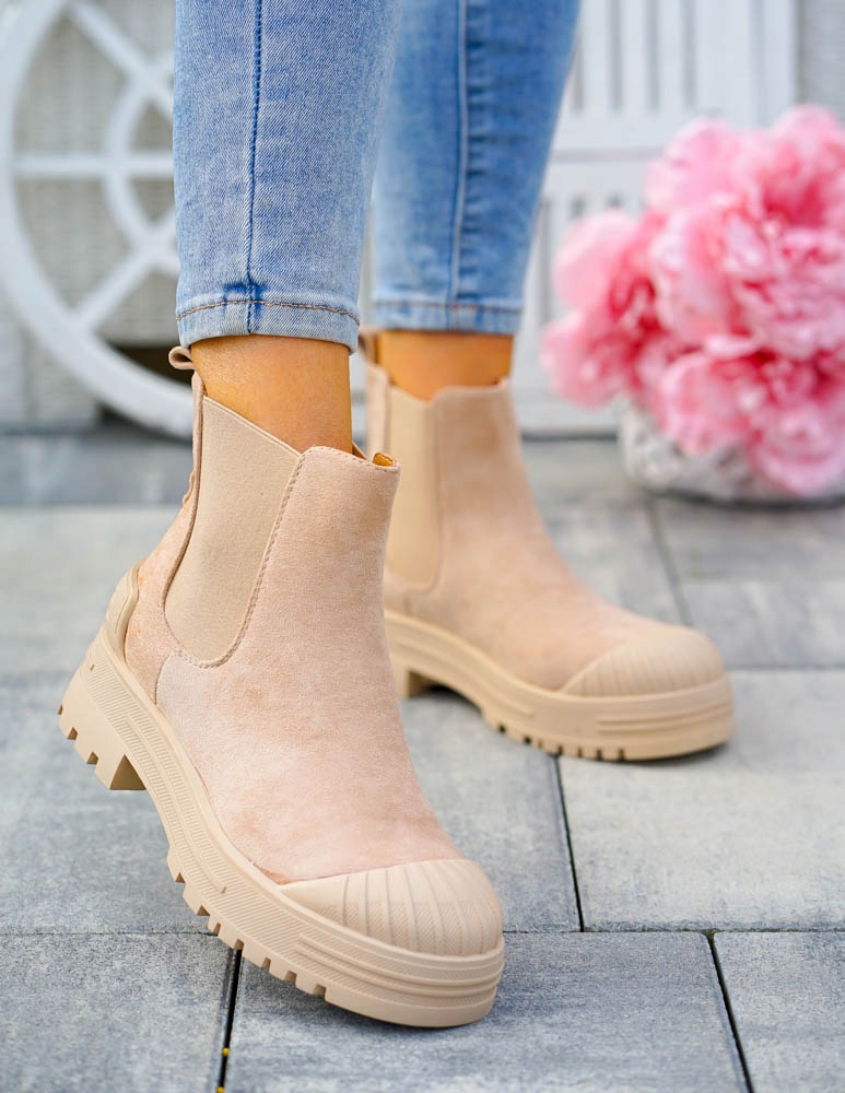 Бежеві замшеві чоботи з каучуком Sahare