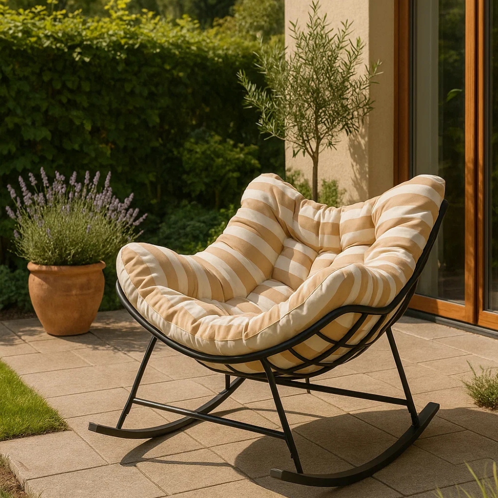 Стул качала был создан для тех, кто ценит комфорт на самом высоком уровне и элегантной эстетике. Мягкая подушка с модными, широкими полосками выглядит не только красиво, но и окутывает тело, обеспечивая приятное ощущение расслабления. Водонепроницаемая стеганая ткань не только защитит кресло от шлифования, но и отлично будет работать во время дома и семейных ужинов. Благодаря прочной конструкции (прочности до 120 кг) наше качалка гарантирует стабильность и безопасность использования, предоставляя вам полный комфорт во время блаженного отдыха как на открытом воздухе, так и в родном углу. Благодаря возможности раскачивания, кресло поддерживает расслабление, снижает стресс и помогает достичь полного расслабления после тяжелого дня.